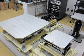 日本各地で発生した地震動を再現できる実験装置です。授業や研究において、 振動台を使用し、今後発生する地震への防災、減災の観点から理解を深めます。また、地域貢献の一環で小中学校、市民への防災教育に振動台を使用しています。