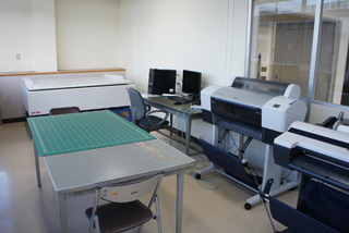 A0サイズ対応のスキャナとA1サイズ対応のプリンタがあります。図面等の電子化やポスター印刷が可能です。
