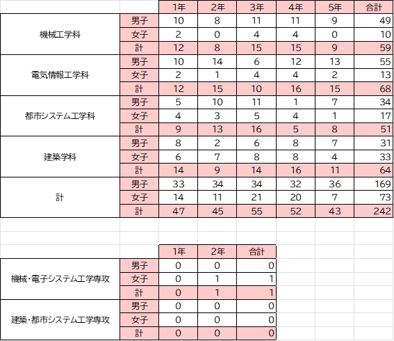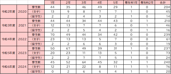 ※2025.4.3現在。専攻科は留学生のみ。