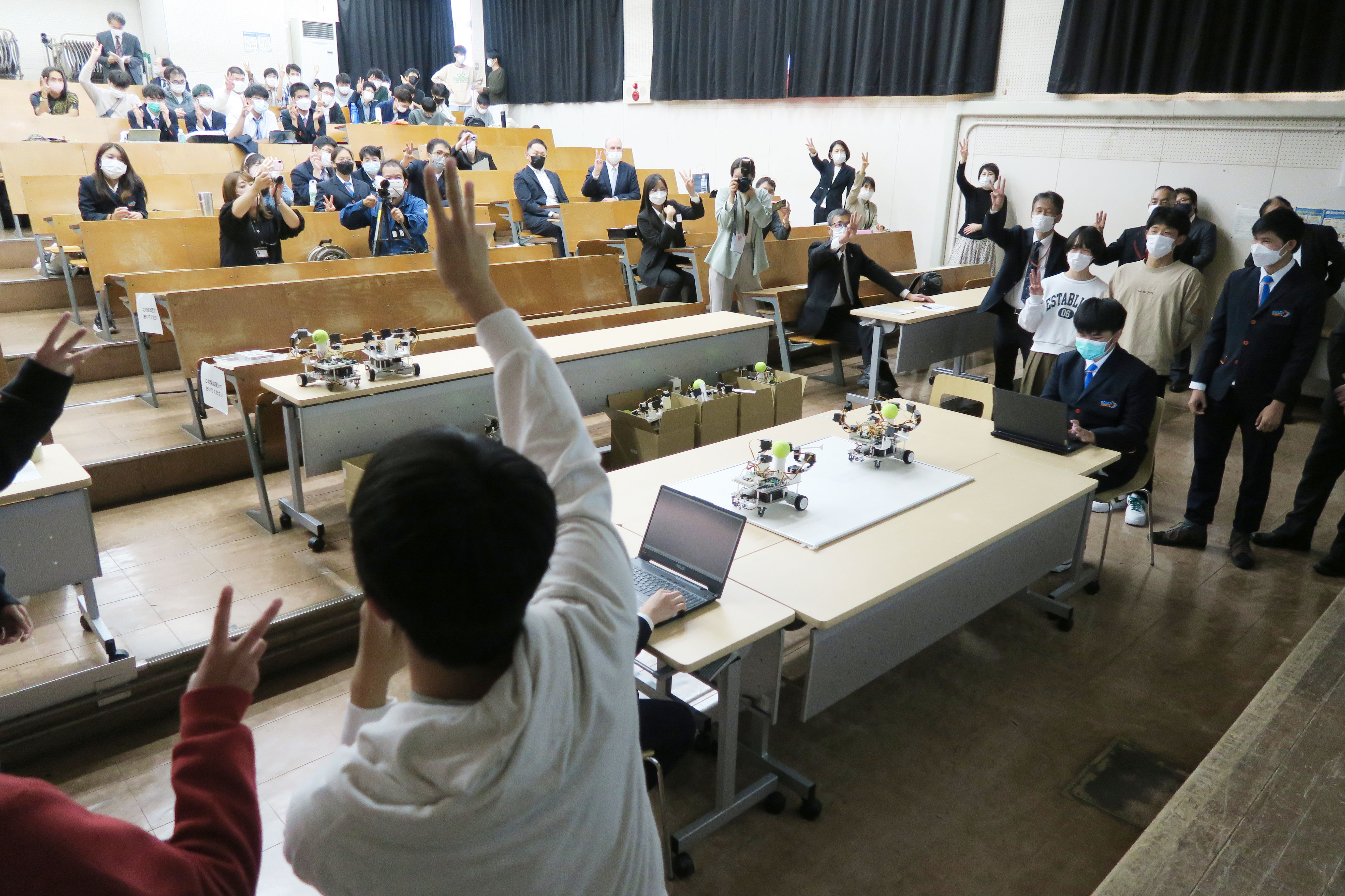 Each team gave a final presentation summarizing the results of the one-month training program that started on October 3. In addition, there was a demonstration of the Samurai Robot, which was made during the training. The smiling faces of the KOSEN-KMITL students were very impressive and showed that the training had been very fruitful. The robot demonstrations were also very exciting, with heated competitions, and the students showed a glimpse of their bond with the Thai students. The closing ceremony was held afterward, and each student received a Certificate of Completion. We hope that they will grow to become engineers representing Thailand in the future.