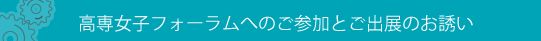 高専女子フォーラムでは、ご希望される企業様からも、「わが社の女性技術者の活躍、男女共同参画への取り組み」という内容での発表をお願いしています。高専の女子学生たちが、憧れるような女性技術者の姿を見せていただき、女子学生のキャリア教育に結びつけたいと考えています。または、各企業様の男女共同参画の取り組み実例についてご発表いただきたいと考えています。高専女子学生や、高専教員に向けて、活躍しておられる女性技術者の姿や女性が働きやすい職場環境の構築、従業員の子育てなどを支援する仕組みなどをご紹介いただければ幸いです。