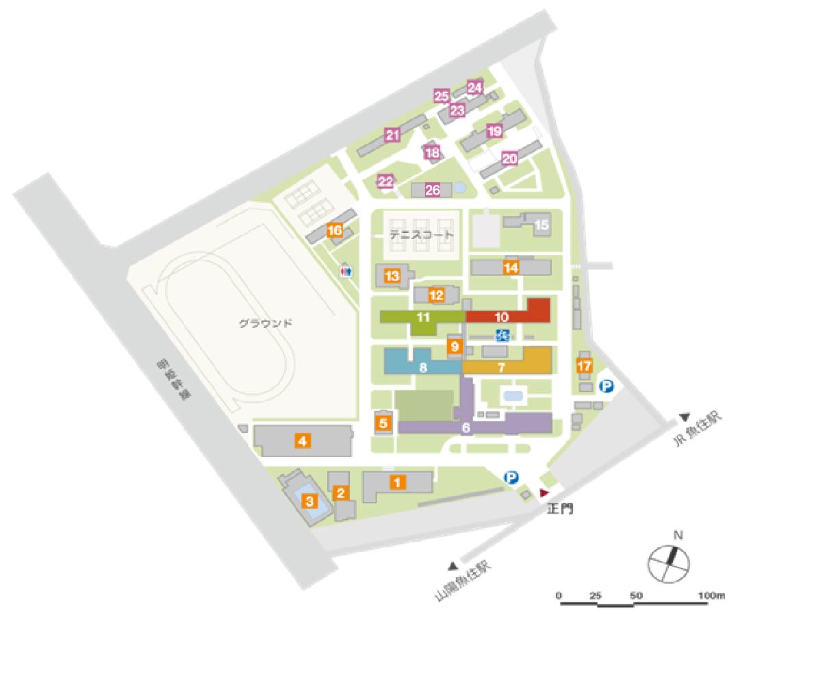 | 4 体育館 | 12 協同学習センター | 21 寄宿舎C寮 |