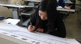 「生きた」知識や技術を身につけられるのも明石高専の特徴です。机上で学んだ基礎理論が実験や実習、また設計・製図などを通じて体感して吸収できるよう配慮しています。そのために、さまざまな充実した施設や先端機器を備えています。また、内外企業等での就業体験(インターンシップ)も積極的に進めています。