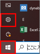 デスクトップ画面左下のWindowsマークをクリックし、「設定」をクリックします。