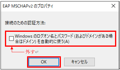 ② ログオンするたびに、この接続用の資格情報を使用する:チェックを外す