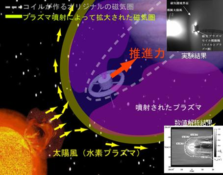 図1:磁気プラズマセイルの研究概要(JAXA 宇宙科学研究所 船木研究室との共同研究)