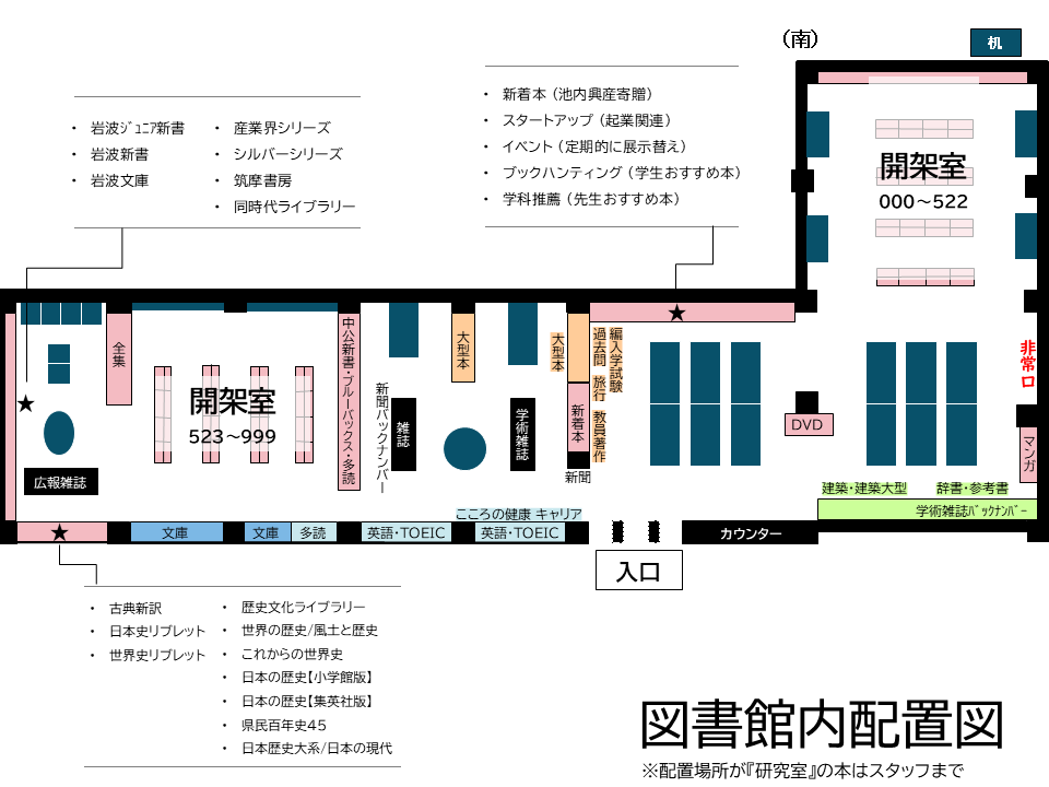図書館は情報メディアセンター2階にあります。建物の前に車いす対応のスロープがあります。