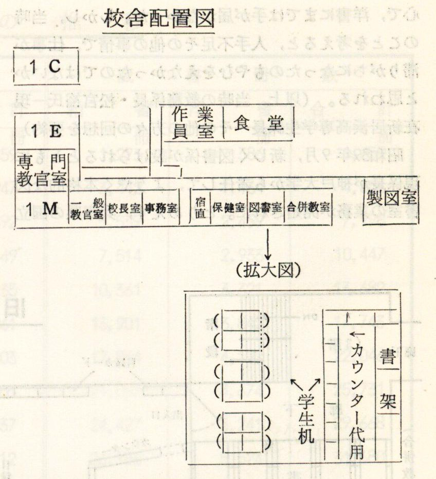 | 年が明けて次の年度の入学試験の受付が行なわれた時には,事務室が手狭な関係から,たまたま図書室が入試関係事務室に転用されることになり,その間は臨時の措置として室外貸出に切りかえて急場をしのいだりした。また本校舎に移ってからの図書整理の仕事を考慮して,係員を地元採用の婦人から専門知識を学んだ人に切りかえることにし,若い有能な女性を紹介されたので,その人を本校舎移転後採用することにした。 | ||