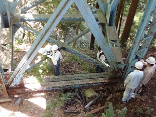 予算不足,技術者不足などによって,十分な維持管理が行われてこなかった橋などの土木構造物では,鋼材の腐食や割れといった様々な損傷が発生しています.本研究では,主に,建設から60年以上が経過する鋼製の橋を対象に,他高専,大学の学生,教員とともに,鋼材の損傷状況の現地調査や,補修工事に伴って撤去された鉄骨部材を使ってより詳細な板厚などの計測,種々の試験を通じて材料特性の調査を行っています. |