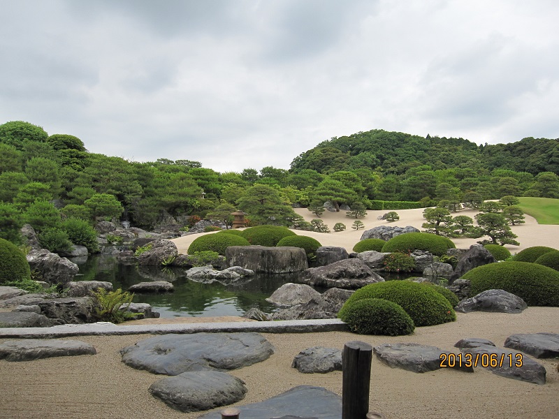 旅行1日目:明石高専発→姫路城→足立美術館→玉造温泉に宿泊姫路城の大天守閣の修復工事、ほぼ終了段階に入っていましたが、見学。岡山県美作で昼食後、島根県に入り、足立美術館で枯山水庭などの日本庭園を満喫した。