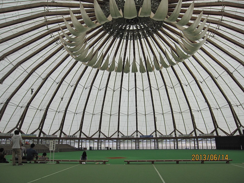 旅行2日目:玉造温泉発→出雲ドーム→出雲大社→島根県立古代出雲歴史博物館→島根ワイナリー→明石高専着鹿島建設が施工した木造の巨大ドーム(出雲ドーム)を見学し、その後、出雲大社を参拝。