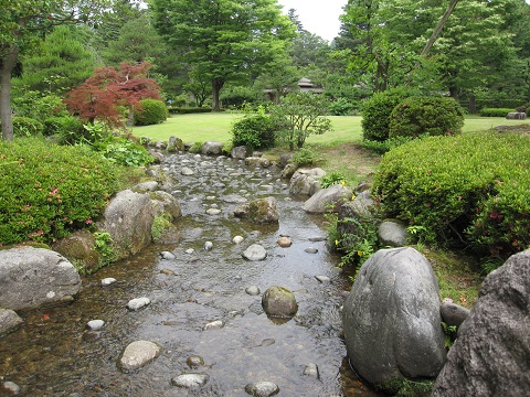 兼六園は日本三名園の一つであり、水のせせらぎと手入れされた庭園を見学しました。水、緑豊かな芝生は、人間の心を癒します。