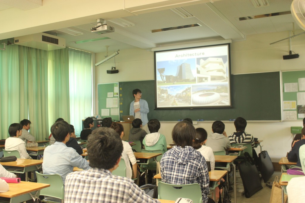 この海外留学、研修までの経緯、留学・研修で得たことをスライドを上手く使い説明してくれました。留学先、研修先の建築物や食べ物の紹介が印象的でした。