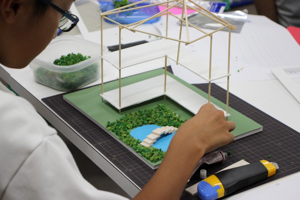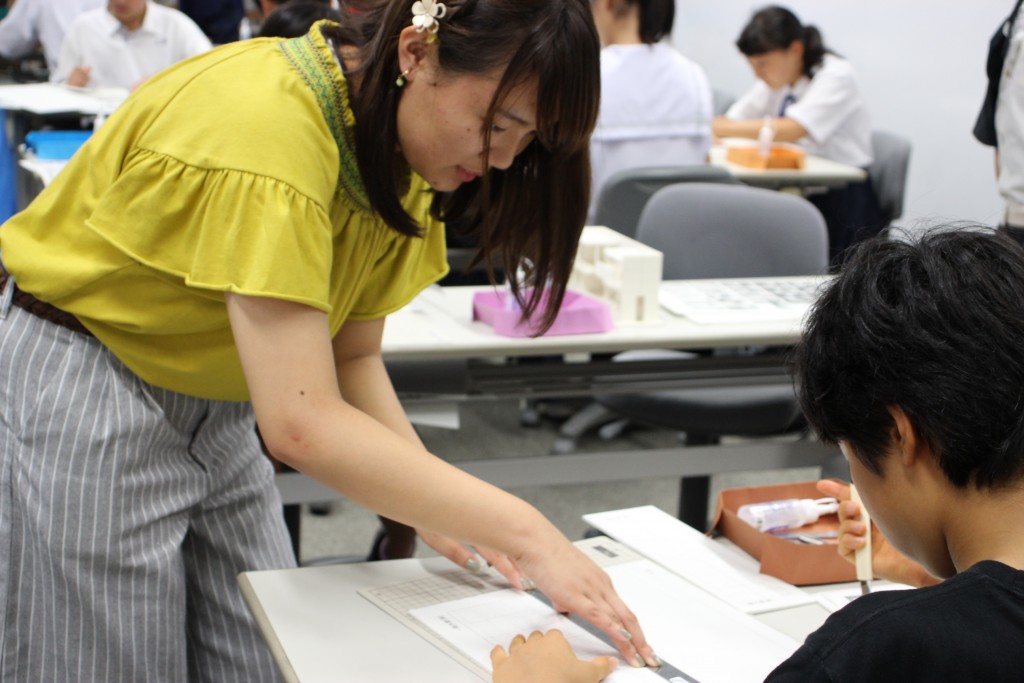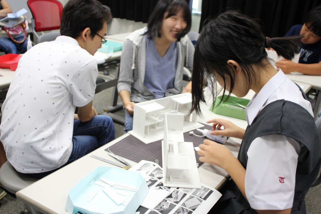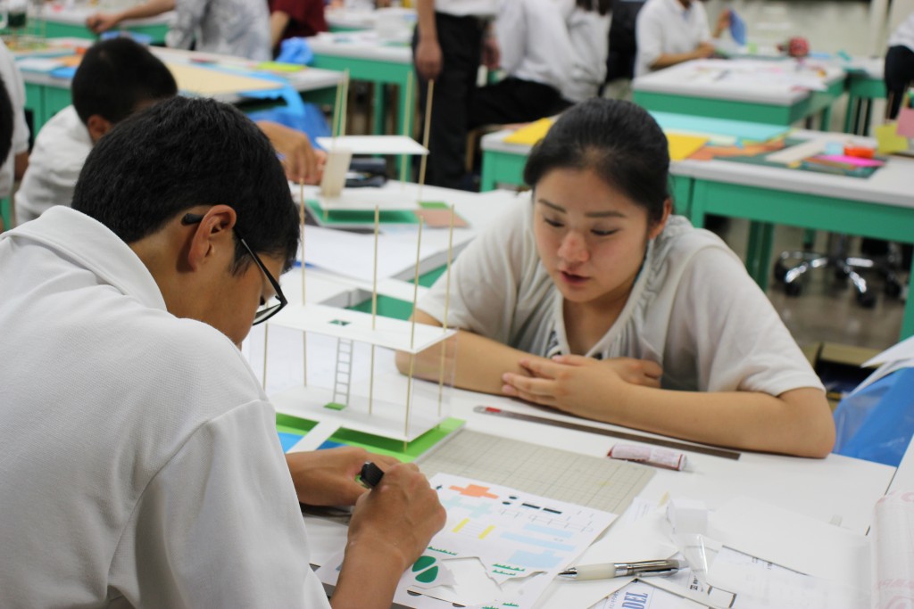 午前の部のでは、5年生を中心に建築学科の特徴や魅了をクイズ形式で説明しました。午後の部でも学生たちが、参加者一人一人に丁寧に、模型の作り方を教えてまわりました。学校の説明よりも、実際の建築学科の学生達を見て、話をしてもらうのが一番建築学科の魅力が伝わると思います。大勢の前でも物怖じせず発表し、見る人に飽きさせないように工夫しデザインする発表資料、そして、自由な創造性、そんな建築学科の学生達の輝きが、参加者の皆さんに伝わっていればとても嬉しいです。先輩たちも、たくさん挑戦して失敗したからこそ、得られた輝きだと思います。来年度、皆さんに会えること教職員一同楽しみにしています。一緒に、たくさん挑戦しましょうね。