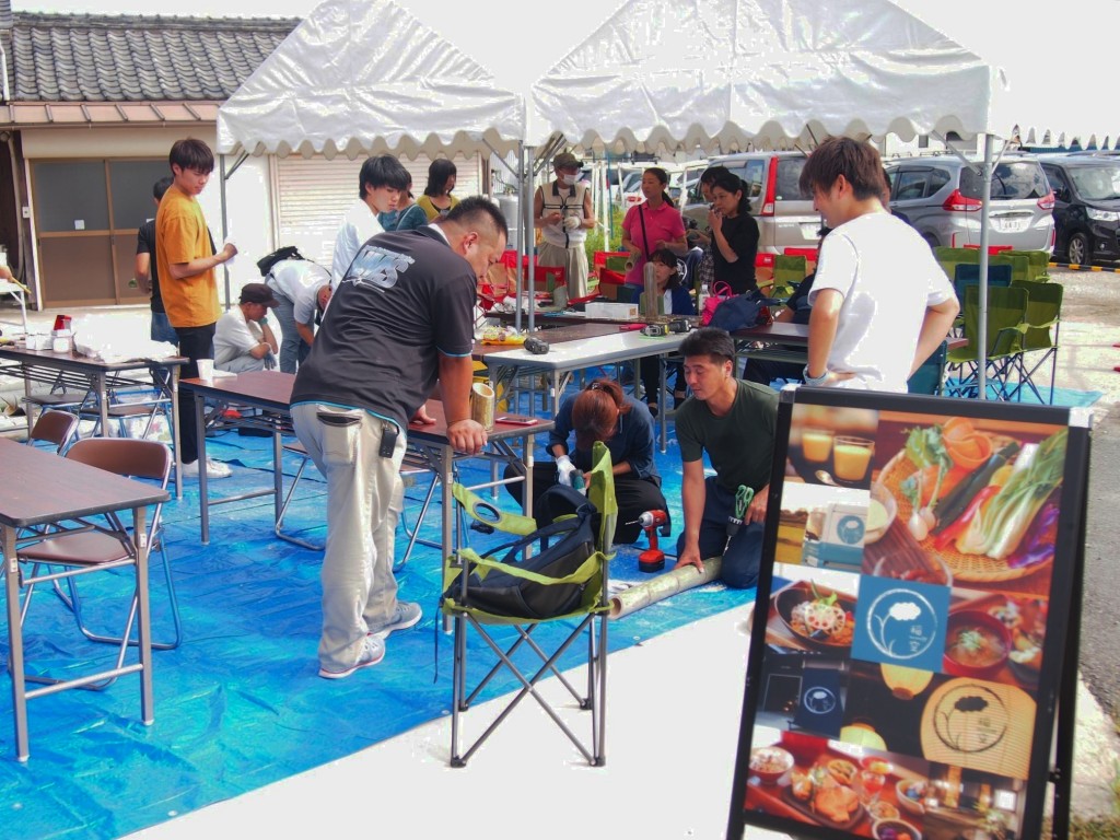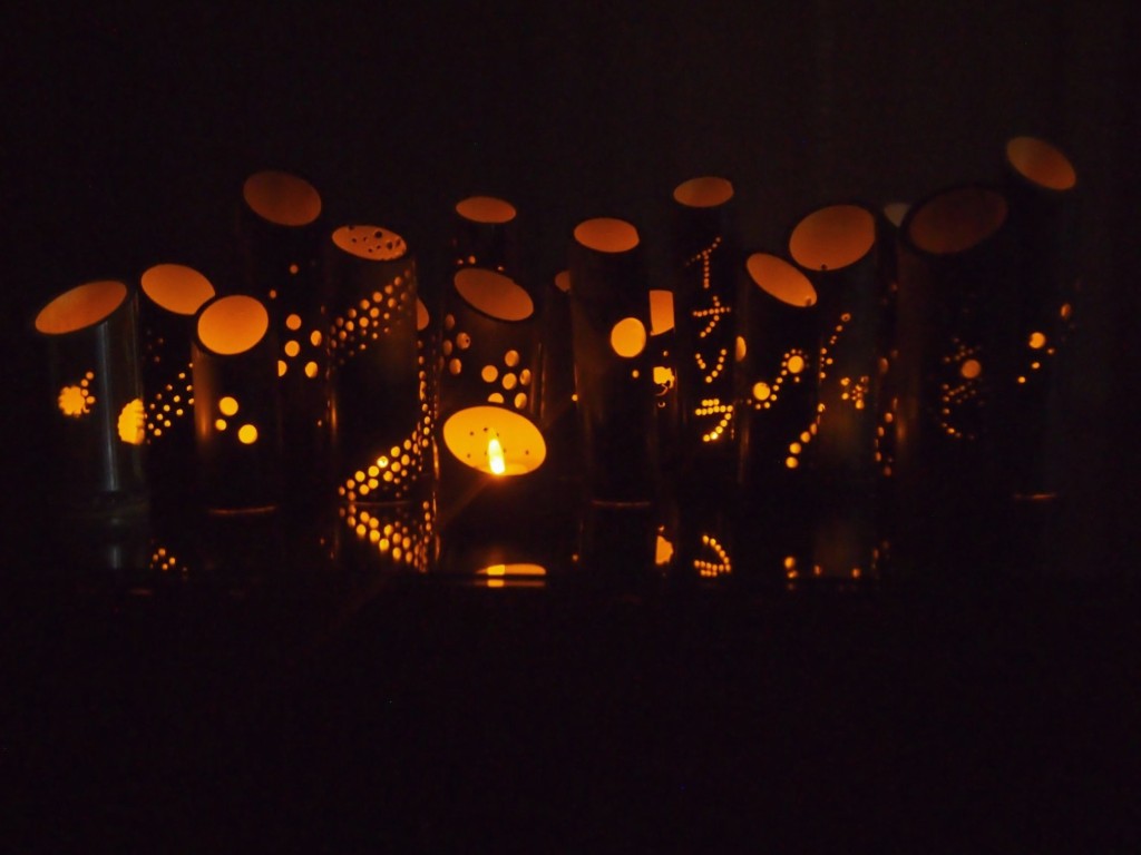 学生たちはお店のライトアップ計画だけでなく、お店のファンを増やすことを目的に、近隣住民や一般の方を“あえて”巻き込んで68本の竹灯籠を作るイベントを企画しました。イベント当日には、総勢30名以上の方が参加し、イベントは大成功に終わりました。