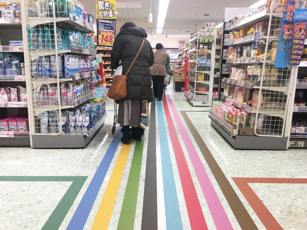 店内にデザインを施すことにより、店舗に付加価値を創造する商空間の独自化を目的したプロジェクト。来店する親子を対象に「Floor Guide」と「Trick Art」の2つのデザインを考案し、実際の店内に施した。