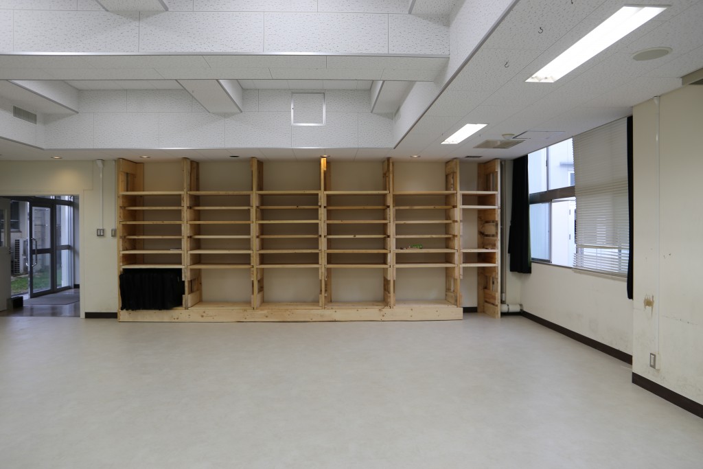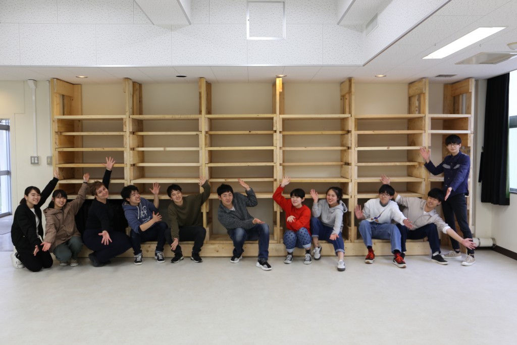 棚の高さが自由に変えられ、且つものつくり室にぴったり合うように、教員と学生らがオリジナルで設計・製作をしました。学生たちの頑張りのおかげで、2日間で全ての棚を製作することができました。以前は、古いスチール棚でしたが、木製棚に変わり、なんということでしょう、ぱっと空間の印象が明るくなり素敵な演習室になりました。春休み期間でしたが、たくさんの学生が手伝いに来てくれました。身体を動かし、自分たちの手で実物を作り上げる作業が、学生たちはとても楽しかったようです。