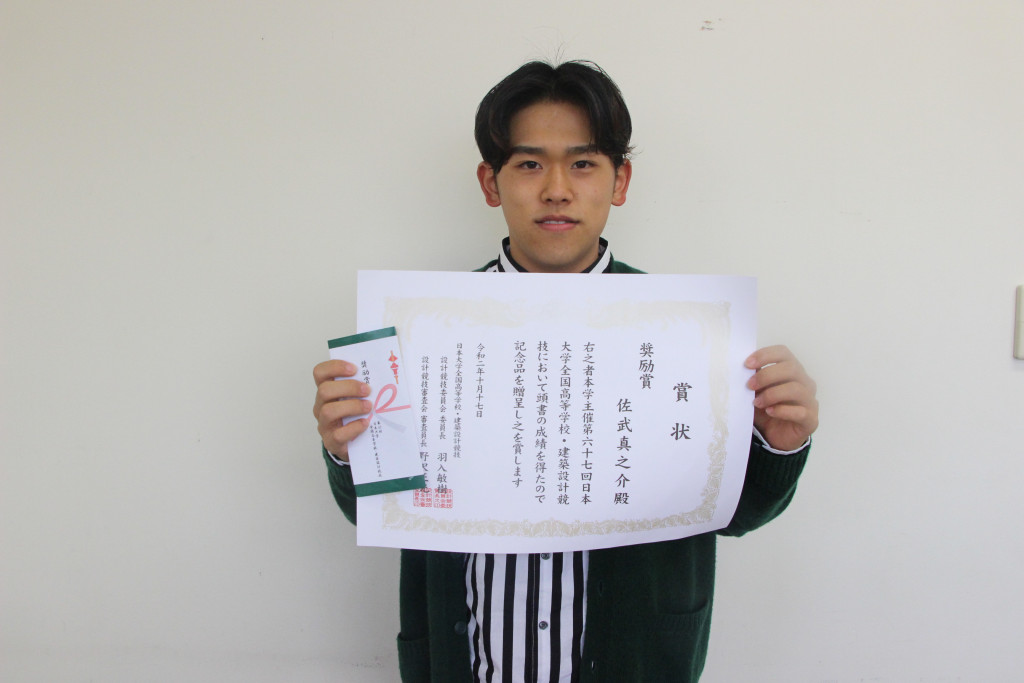 第67回 日本大学全国高等学校・建築設計競技にて建築学科3年佐武真之介さんの作品が奨励賞を受賞しました。