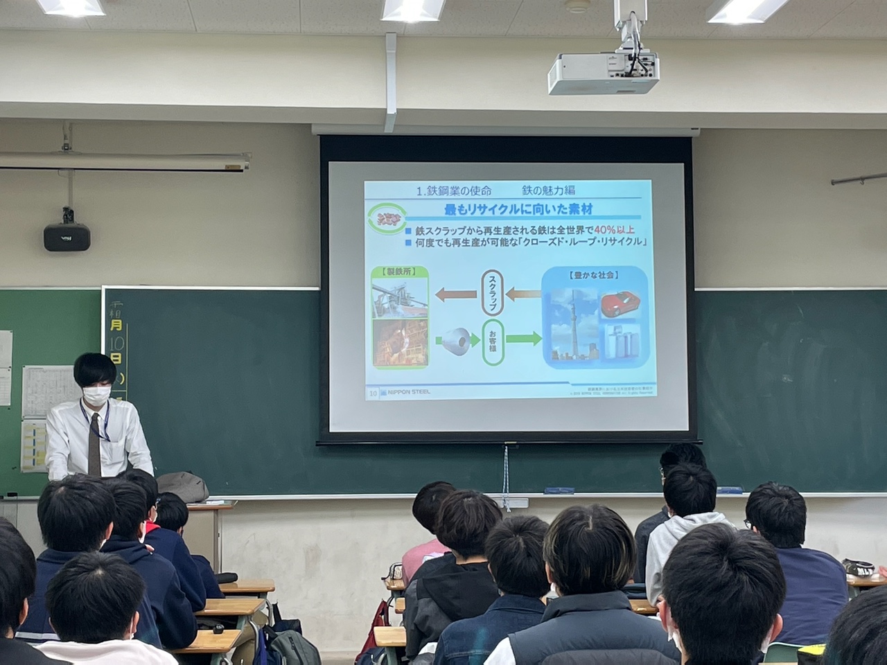 2021年11月10日(水)に、2019年度都市システム工学科卒業の小林杏志さんが勤務先である日本製鐵株式会社の企画「母校里帰り訪問」として、3Cの学生に対して講演されました。社会人になってからの実務経験を丁寧にわかりやすくご説明いただき、質疑応答では3Cの学生から活発に質問が出てきました。3Cの学生にとって、良い刺激になったようです。
