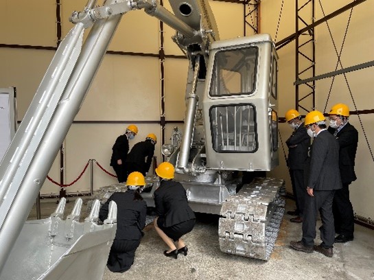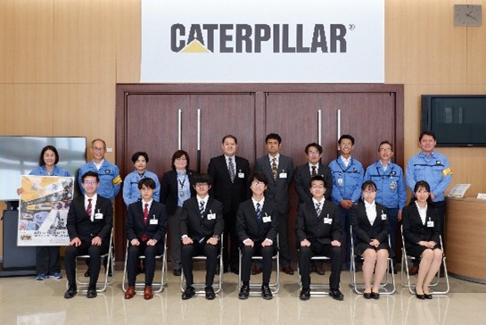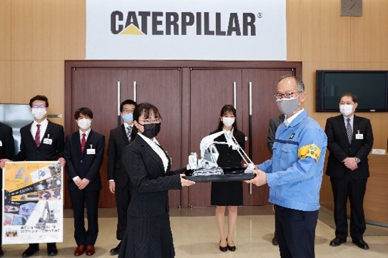 機械工学科5年生がキャタピラージャパン明石事業所に「ユンボY-35」のスケールモデルを寄贈