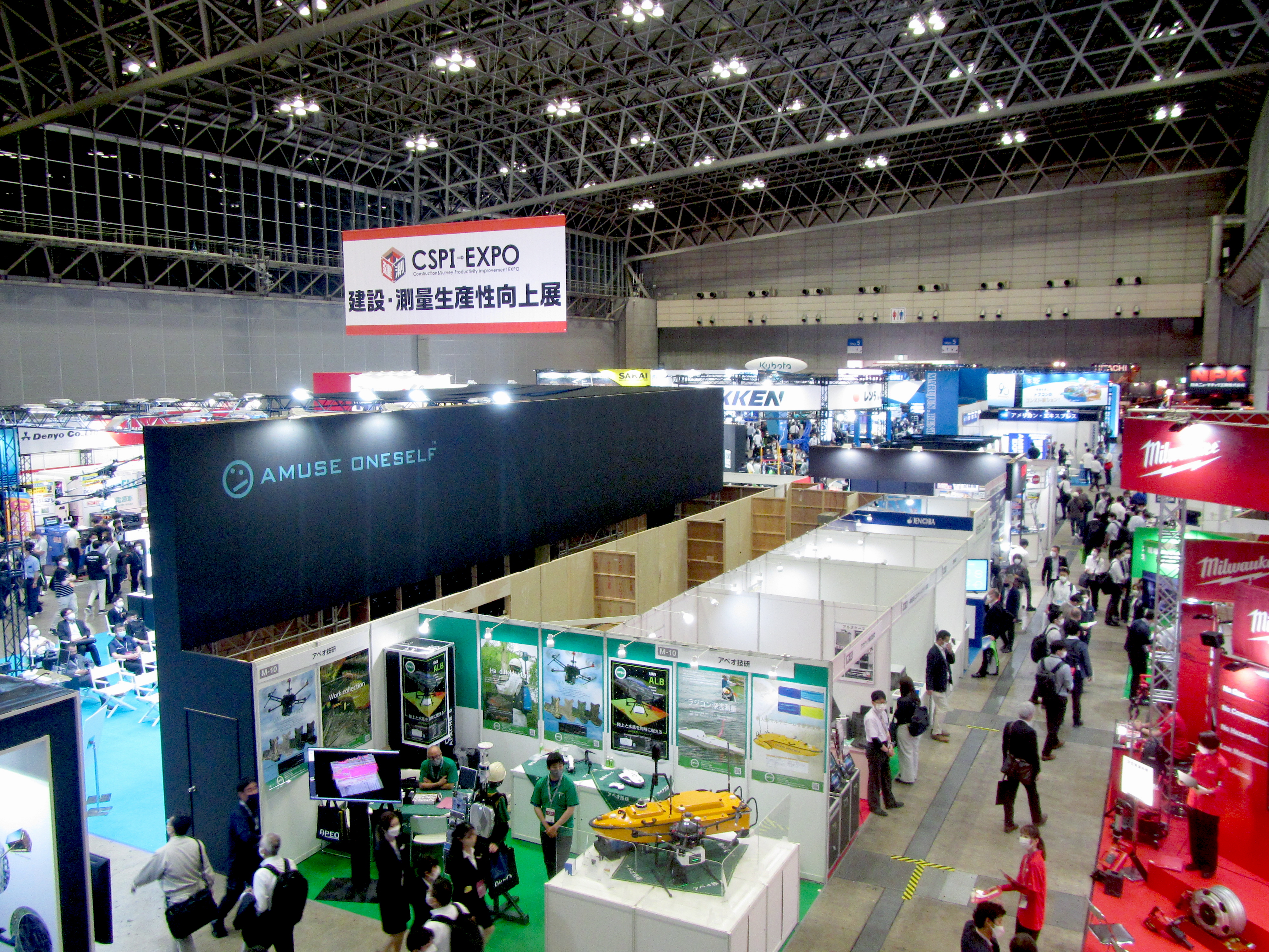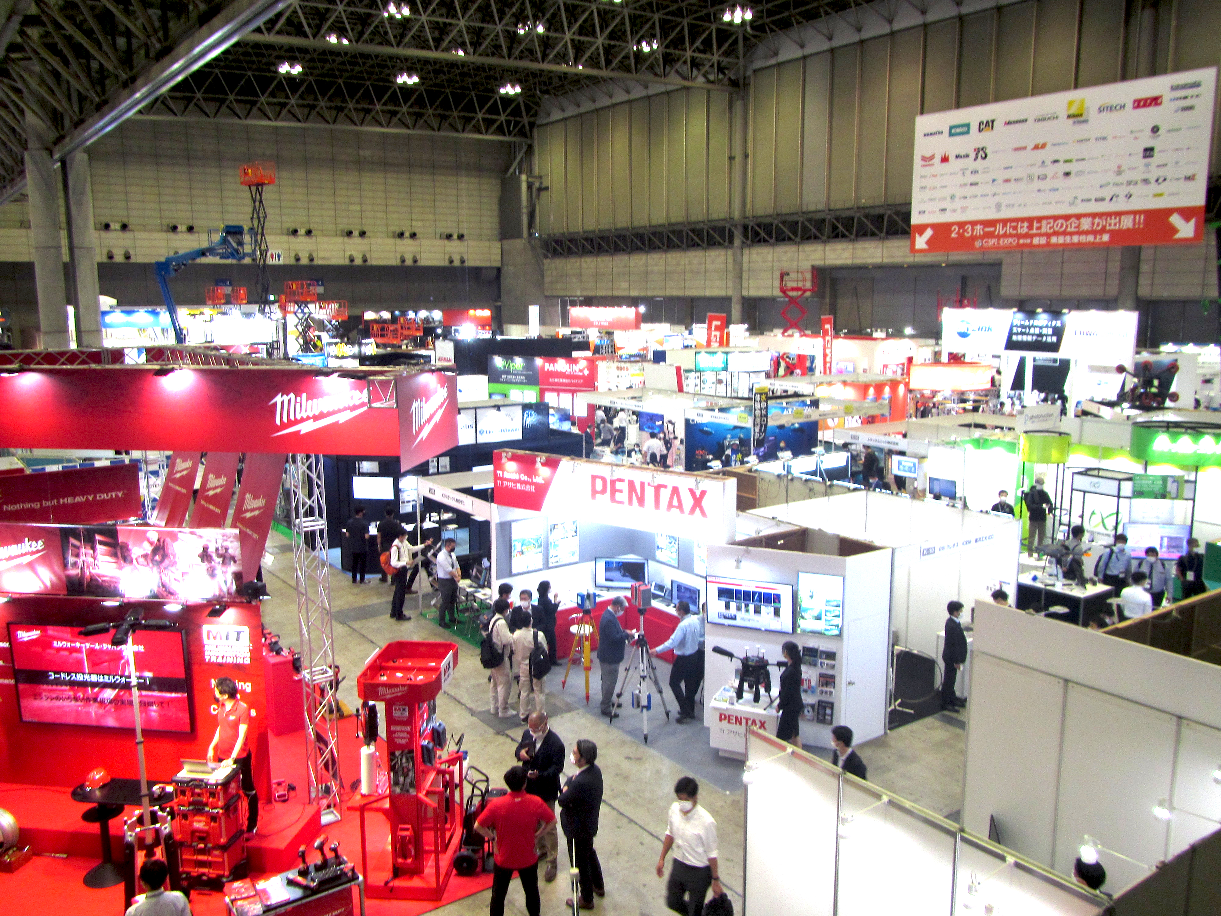 CSPI-EXPOは建設業界・測量業界の次世代を担う、建機・重機・アタッチメント・建設DX・i-Construcionなど、進化し続ける業界最先端の製品・技術・サービスが一堂に集結した展示会です。幕張メッセホール内、屋外展示場での企業ブース出展の他、業界のキーパーソンによるセミナー、各社の最先端事例を紹介した技術PRセミナーなどが催されました。
