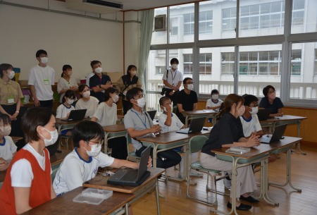 共同授業を見学・体験する米田小教員の様子