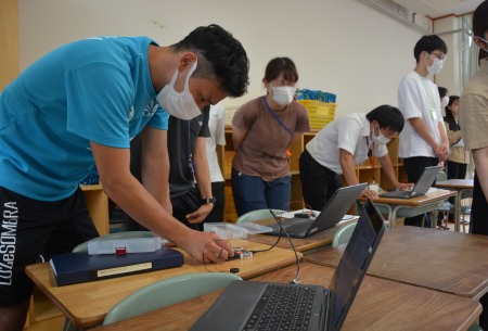 今回の共同授業では、受講した児童がより便利・快適な社会にすることができるプログラムの役割と可能性を学んだだけではなく、当該授業を支援・体験・見学した米田小の教員及び本校の学生にとっても指導方法等のノウハウを学ぶことができたと考えています。