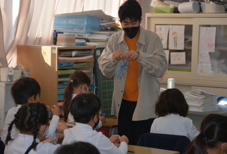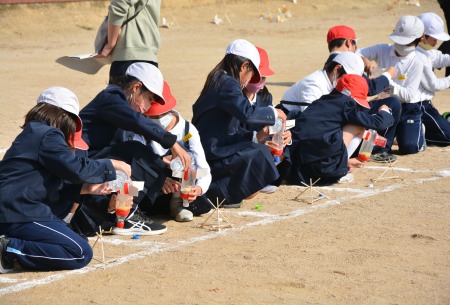 このたびのPTCA行事には、本校が連携し、STEAM教育を取り入れた内容での開催となっており、1・2年生には、静電気を利用した「電気クラゲ」、3・4年生には、空気の圧縮を利用した「ペットボトルロケット」、5・6年生には、火薬の推進力を利用した「モデルロケット」の製作を原理の説明後に実施しました。