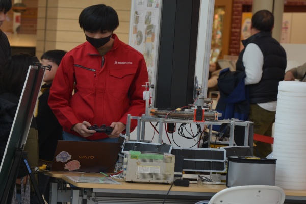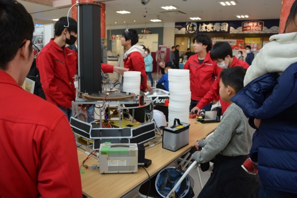 「ダ・ヴィンチの橋、総合治水模型の展示」を行ったほか、ロボットの操作体験や高専ロボコンに参加した