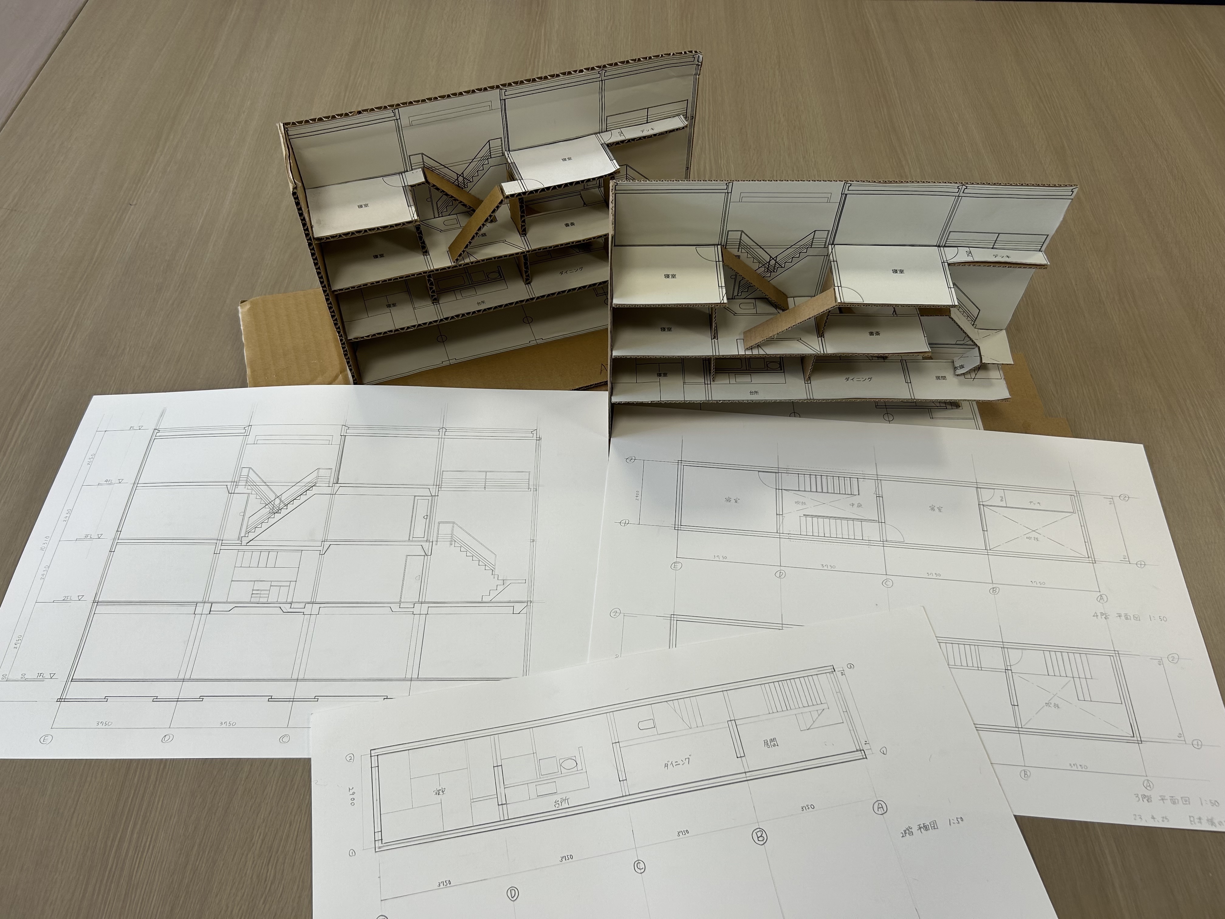 「描いた図面や模型より実際の建物を狭く感じたが、吹き抜けを多用しているから開放感を感じた」