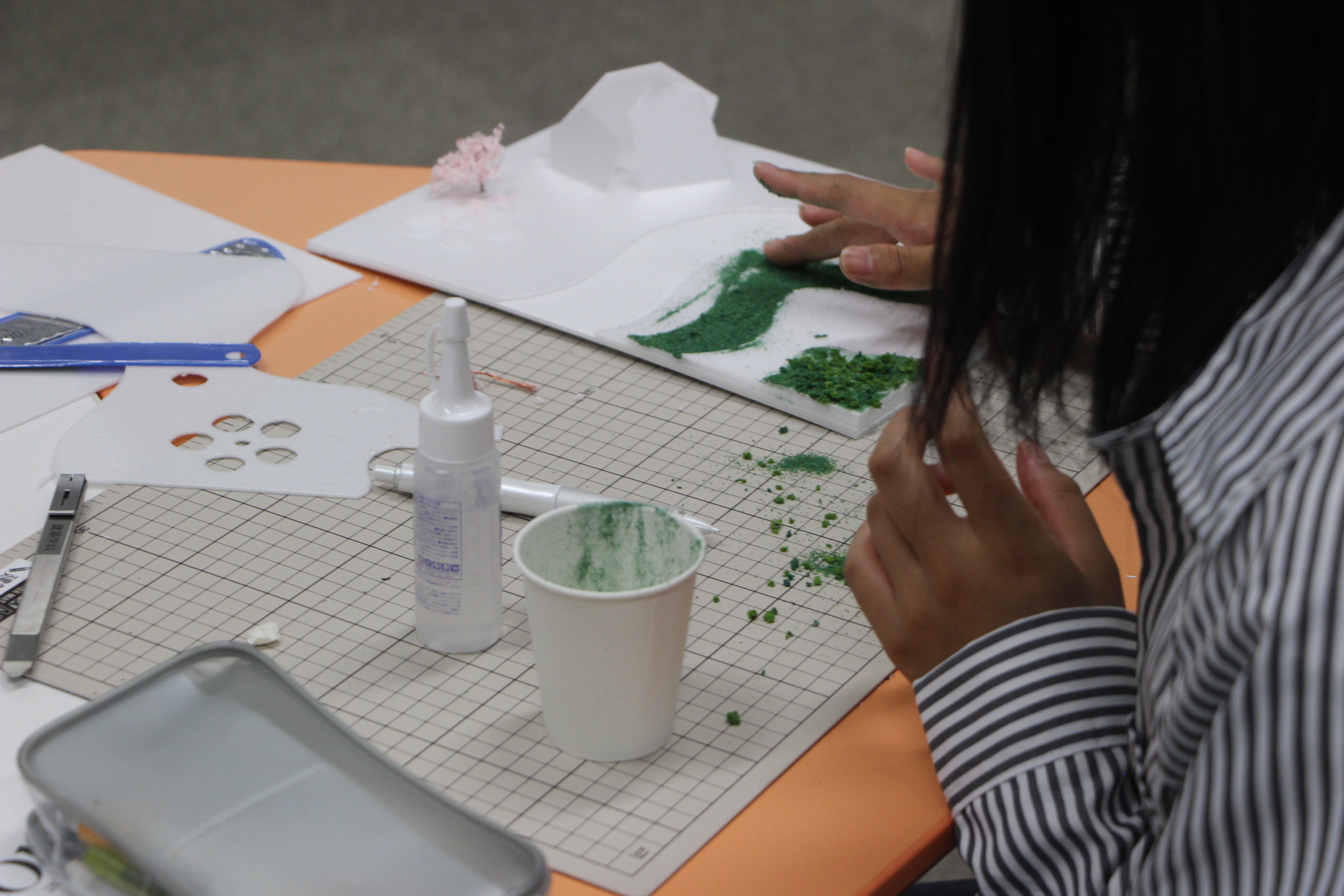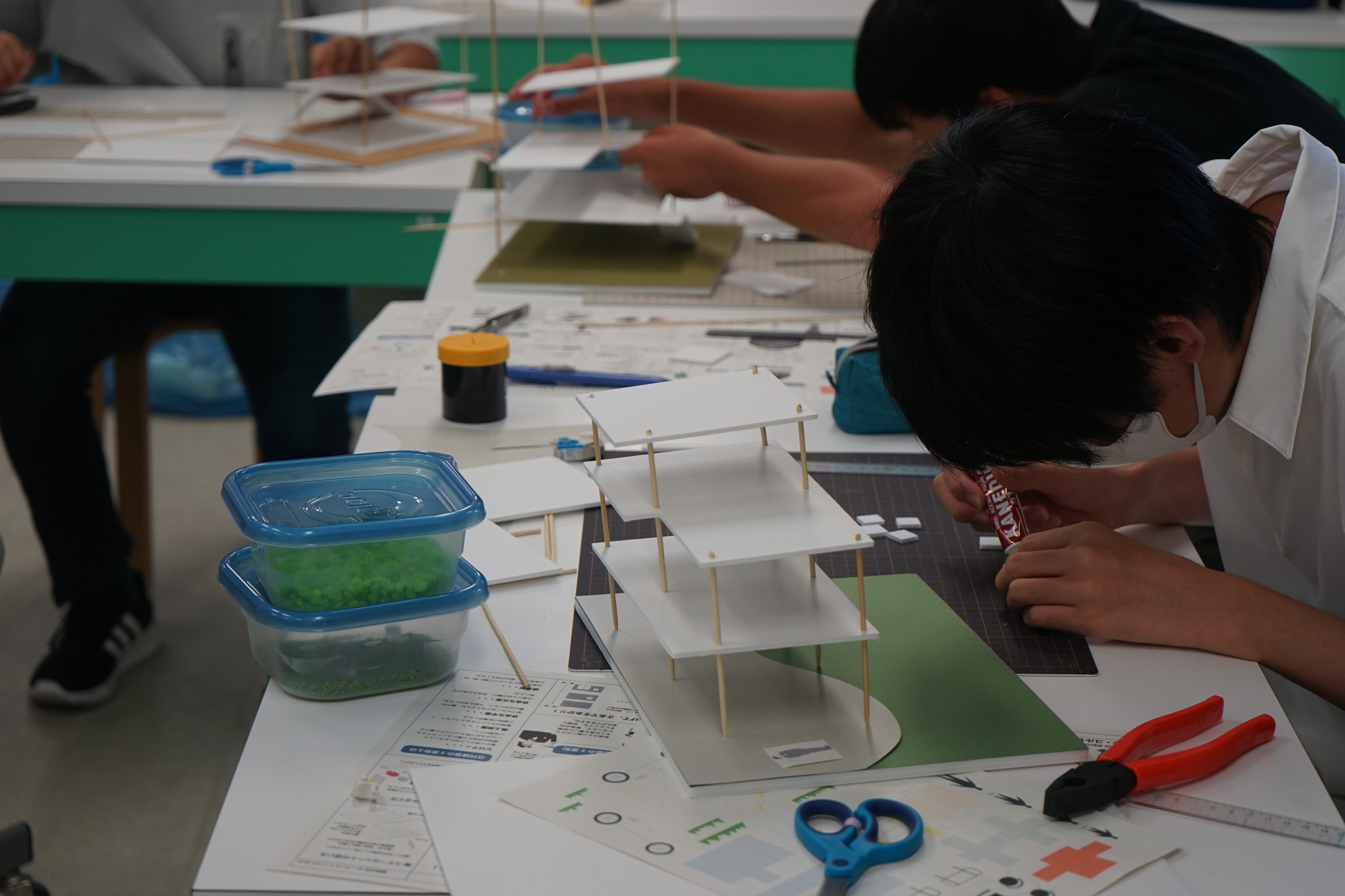 模型の作成を行う講座に参加してくれた中学生は講座の説明を聞いた後、各自で設計を行い、時間内に作品