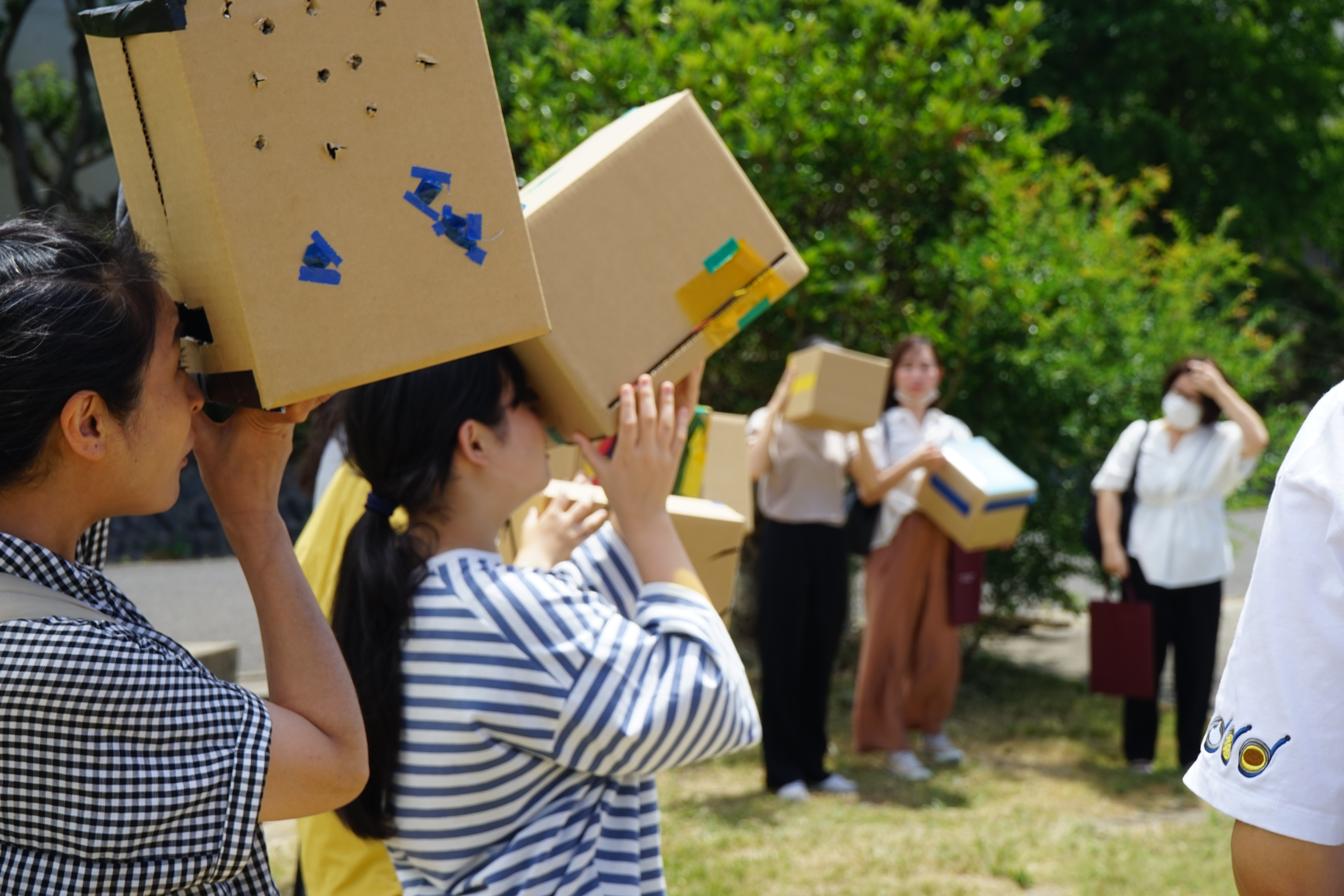 学科体験講座には教職員のみでなく、在学生も一緒に支援にあたっているため、中学生は作品制作中も