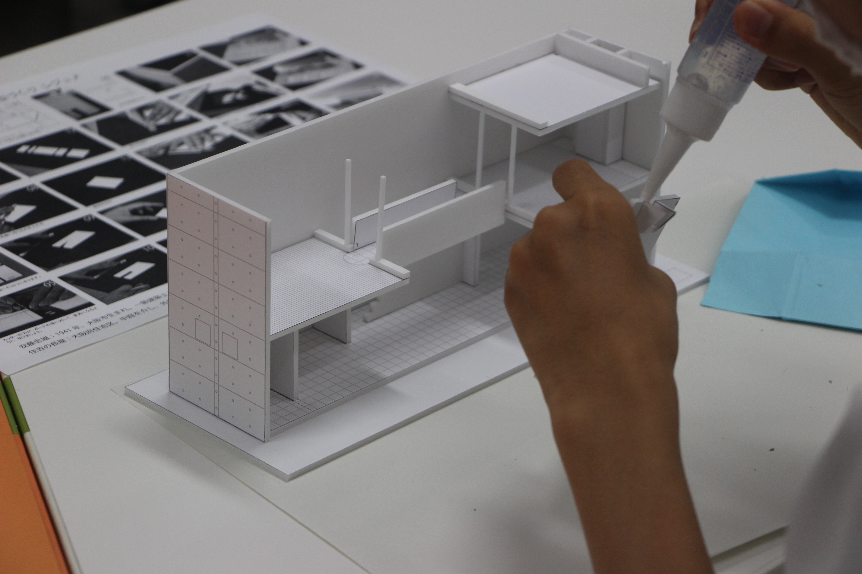 建築学科では模型の作成や建物の製図など、本校入学後に授業で学ぶ講座のほかに、在学生との対話型の