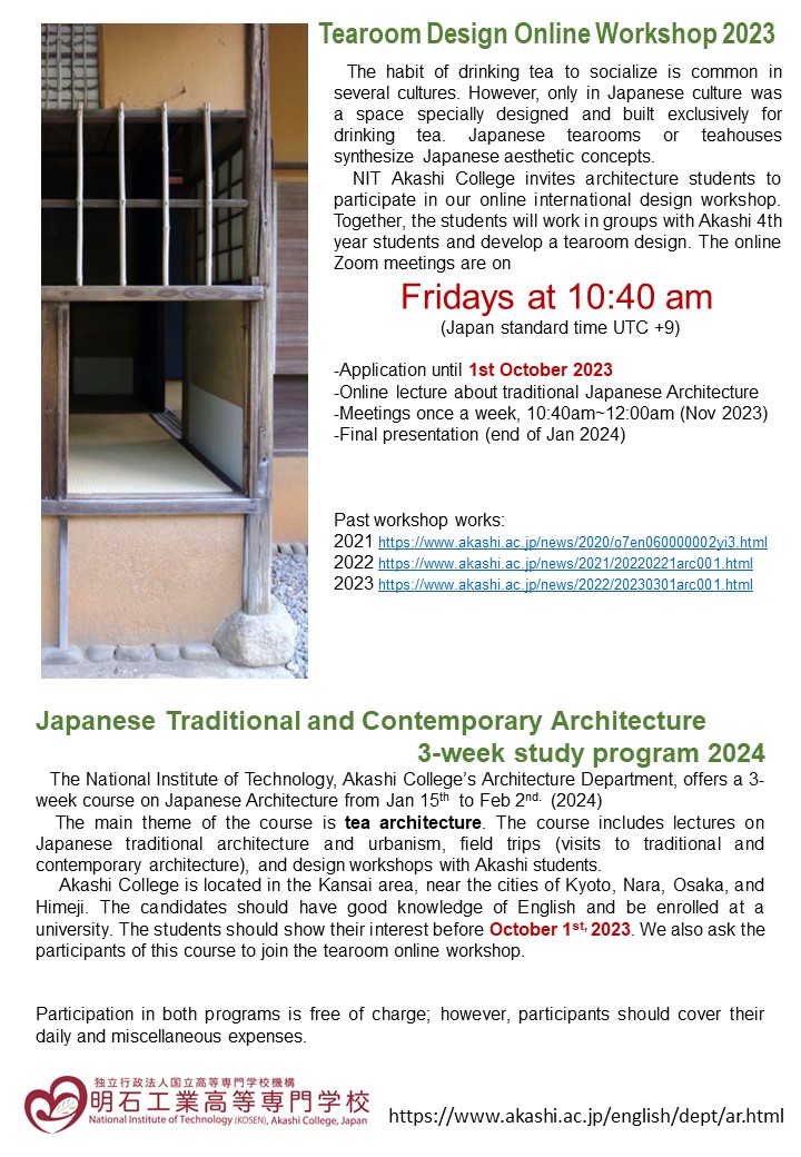 NIT Akashi College invites architecture students to participate in our online international design workshop.
