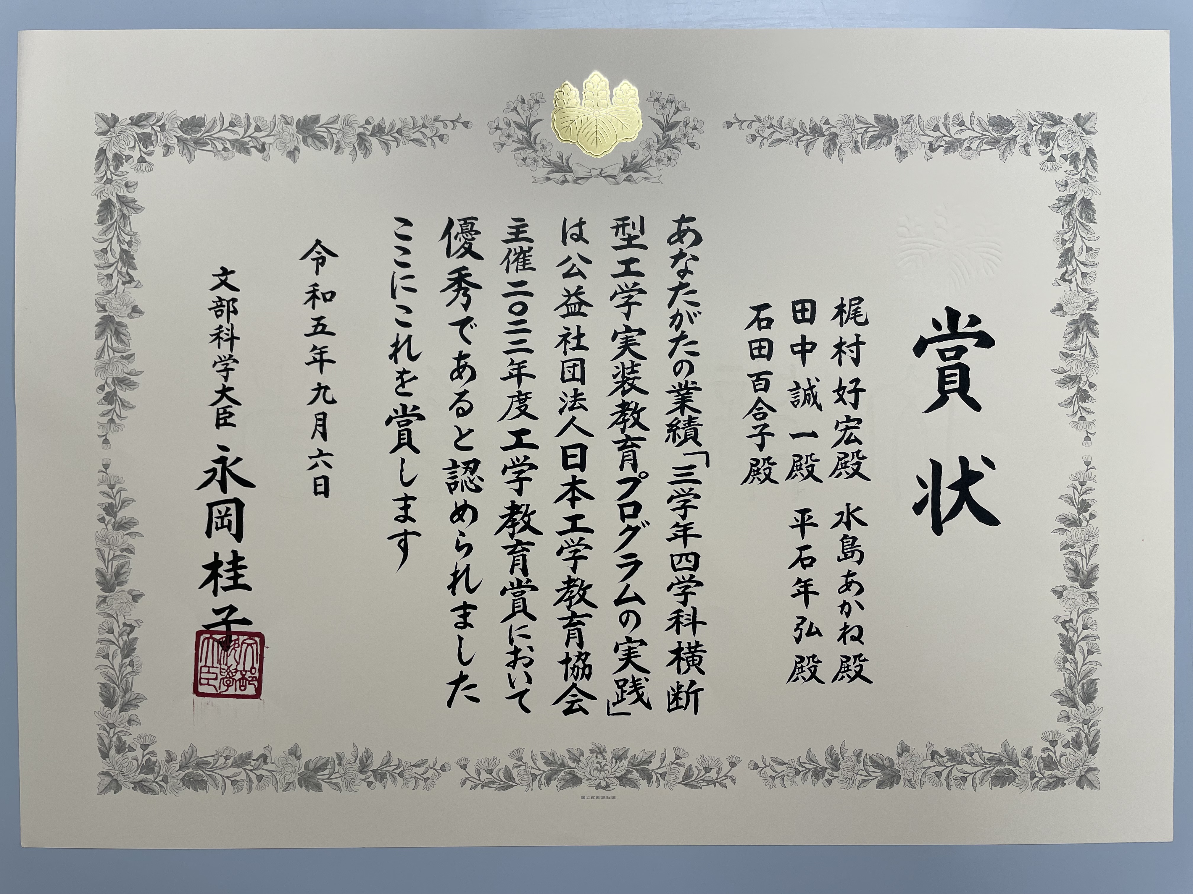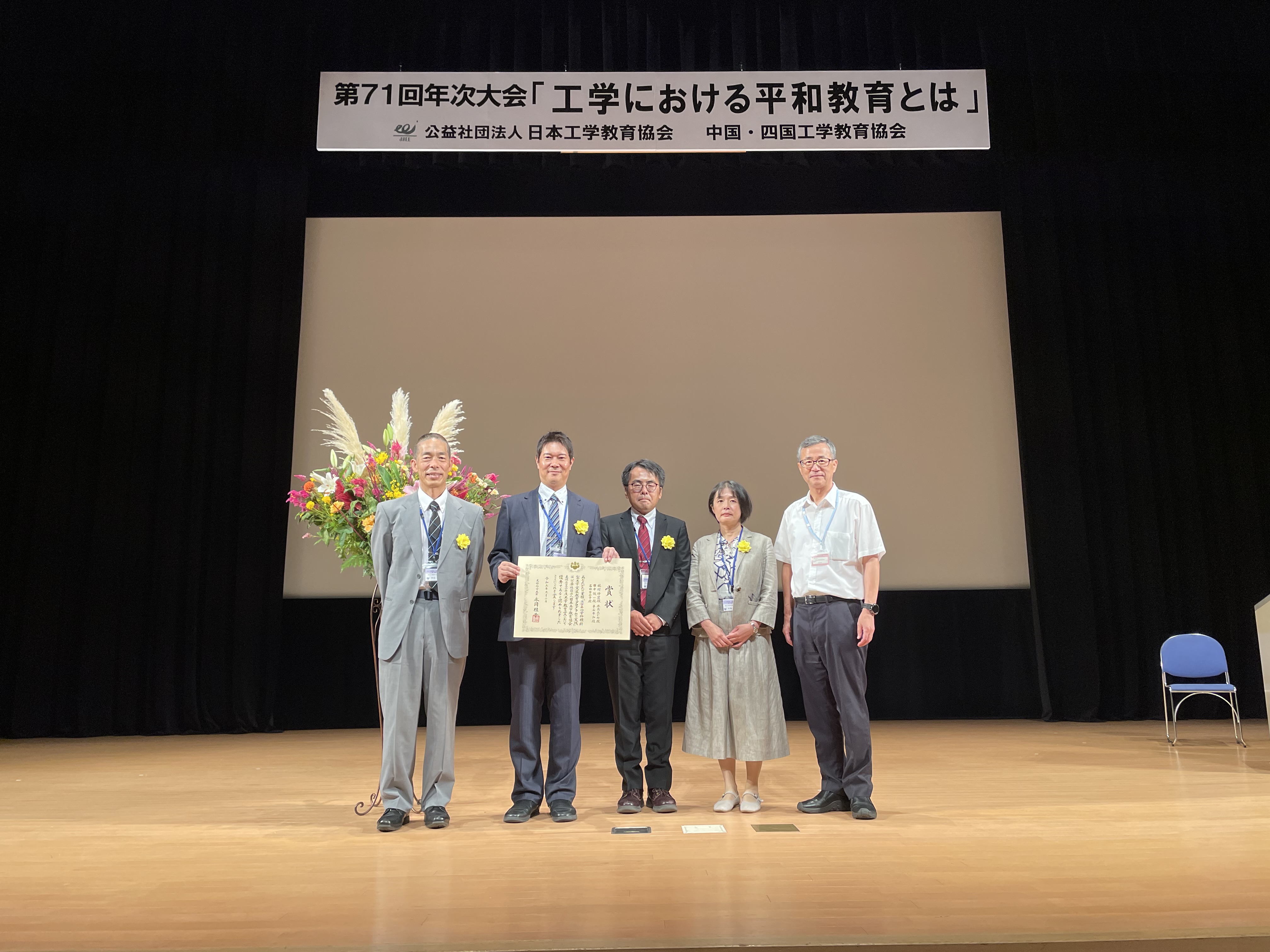 令和5年9月6日(水)広島大学東広島キャンパスで開催された日本工学教育協会第71回日本工学教育協会年次大会にて表彰式が行われ、受賞講演と受賞者代表挨拶を行いました。