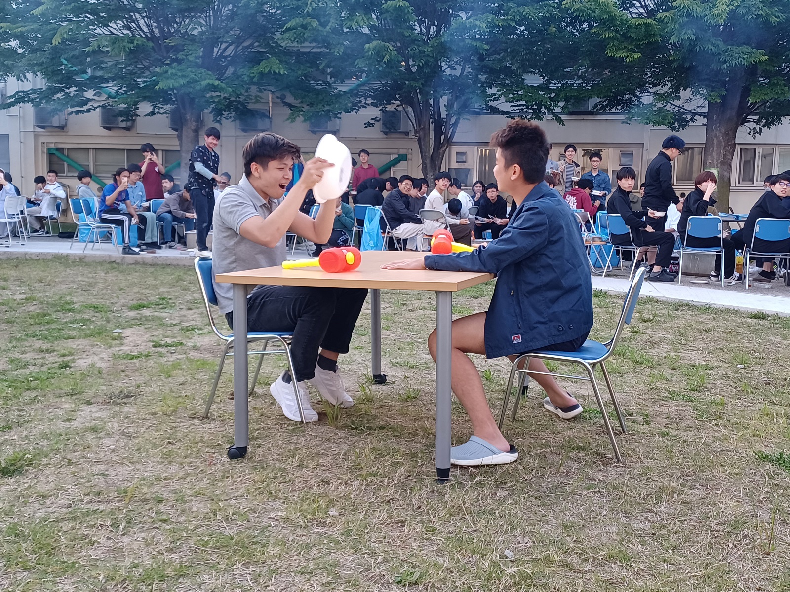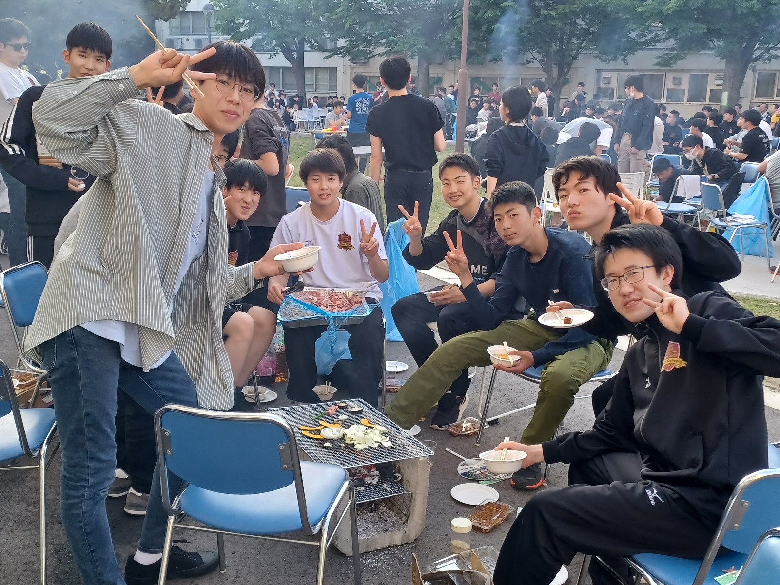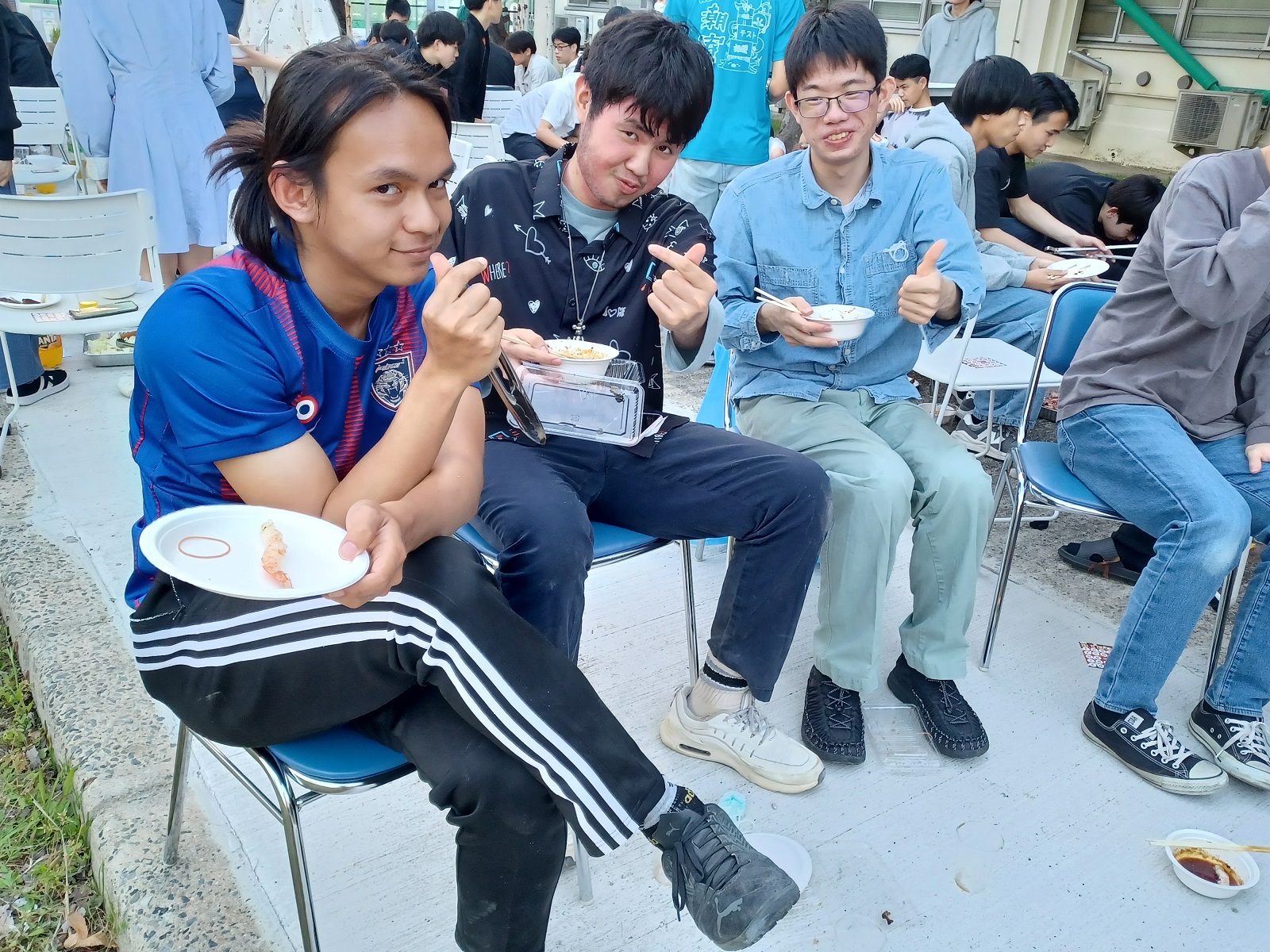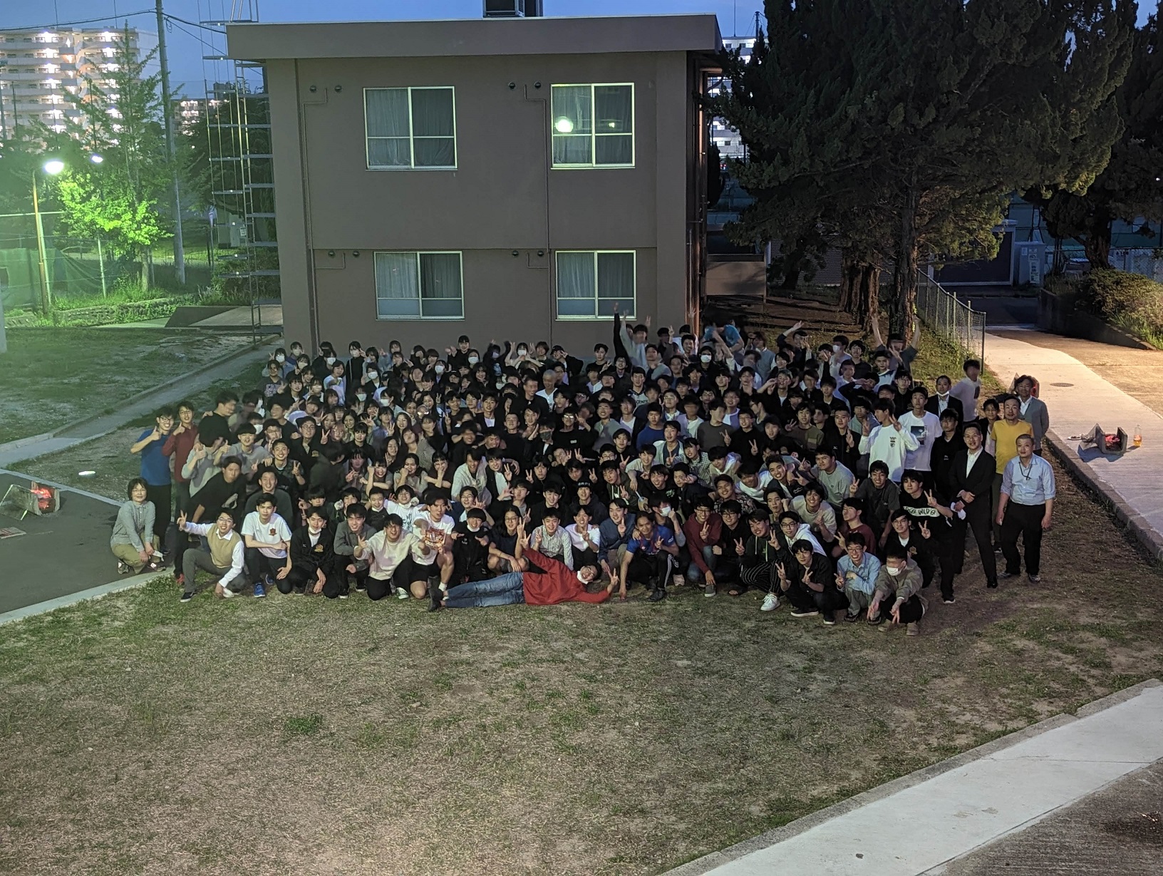 寮生の親睦を深めるため、寮内の敷地でバーベキューを行いました。腕相撲大会やパンスト相撲などの楽しいイベントと美味しい料理に堪能したひとときと全寮生で記念撮影を行いました。企画運営を行ってくれた寮生役員の皆さんお疲れ様でした。