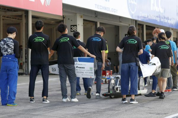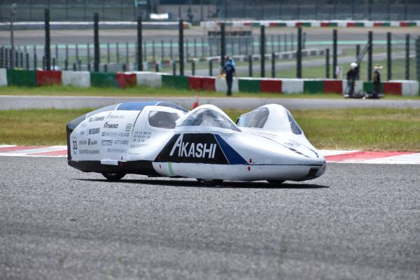 本レースへの出場は3回目、前年度で初完走を果たしたため、今年度は大幅なタイム更新を狙って車両の製作に取り組んできました。休日・早朝の時間を使った校内走行練習を繰り返し、大会当日まで改良・調整を十分にしてきました。酷暑の中行われたレース当日、1stアタックでチーム記録を更新する好タイムを記録、2ndアタックでは停止するトラブルが発生したものの、ドライバー・メカニック学生で対策を練り3rdアタックで再びタイムを更新する快走をみせてくれました。