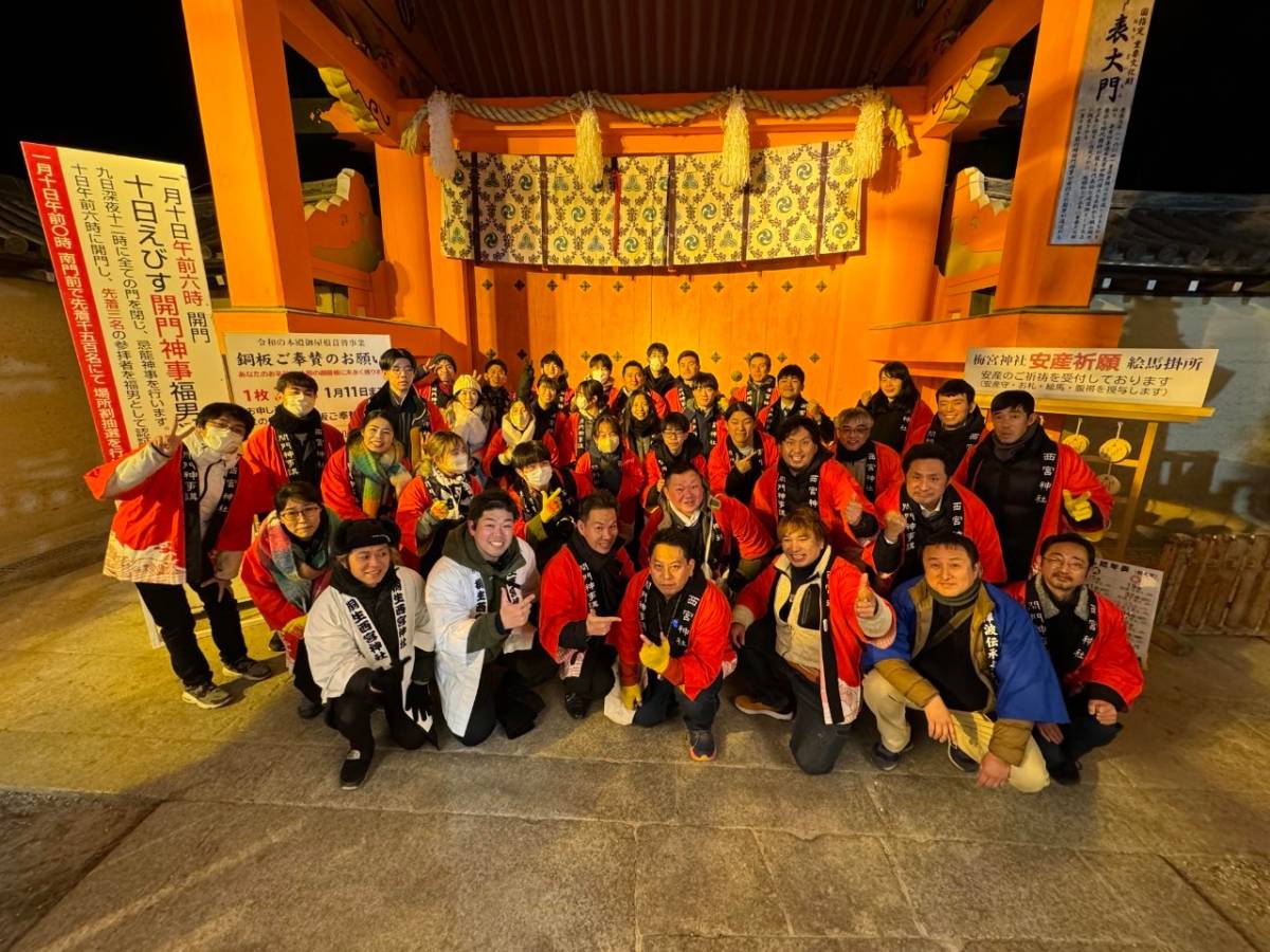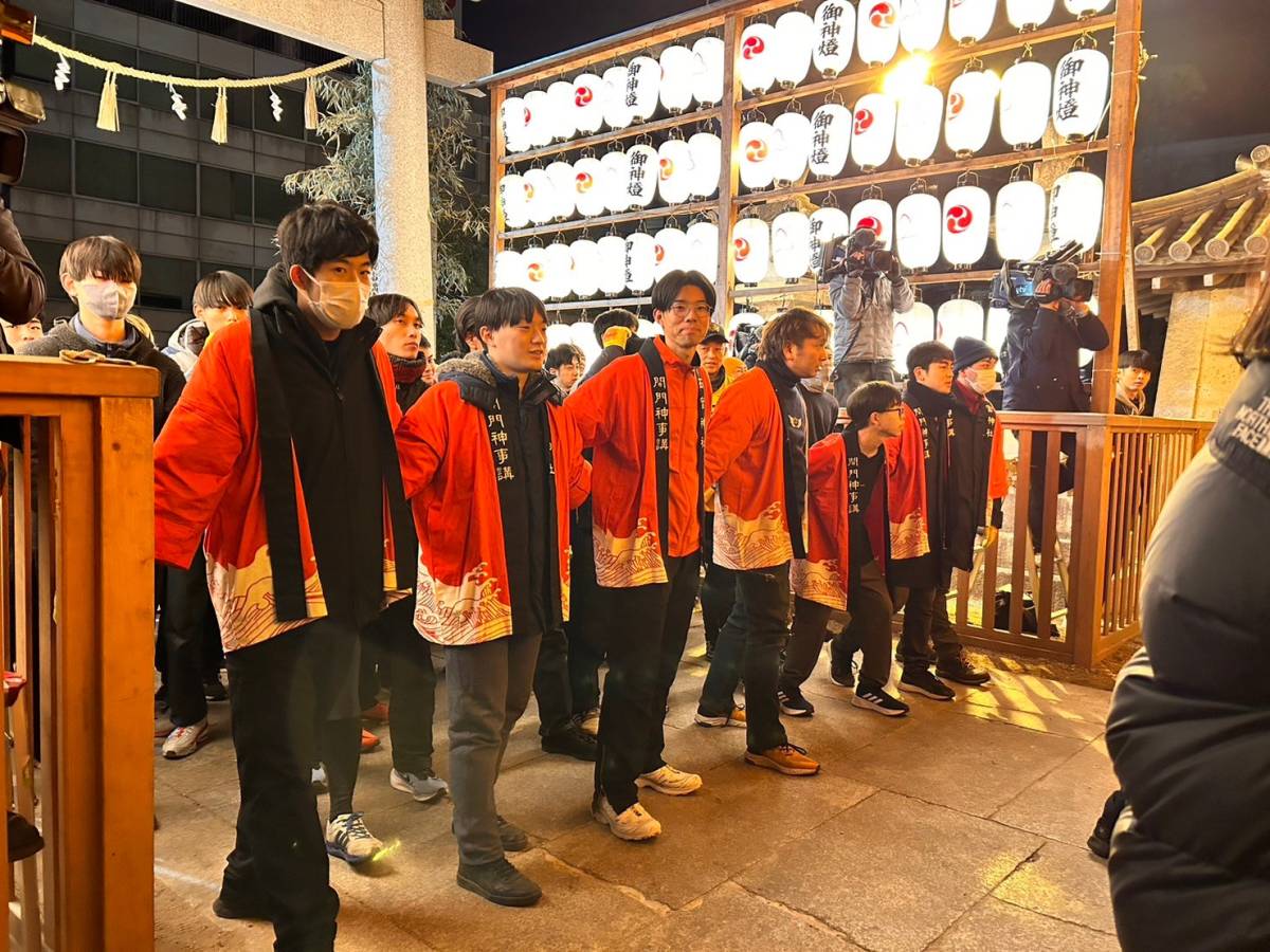 1月9日夕刻から10日午前にかけ、本校学生15名、本校卒業生5名が阪神間最大の新春行事となった西宮神社の「十日えびす開門神事福男選び」に地域連携の一環として、本年度も賛助しました。