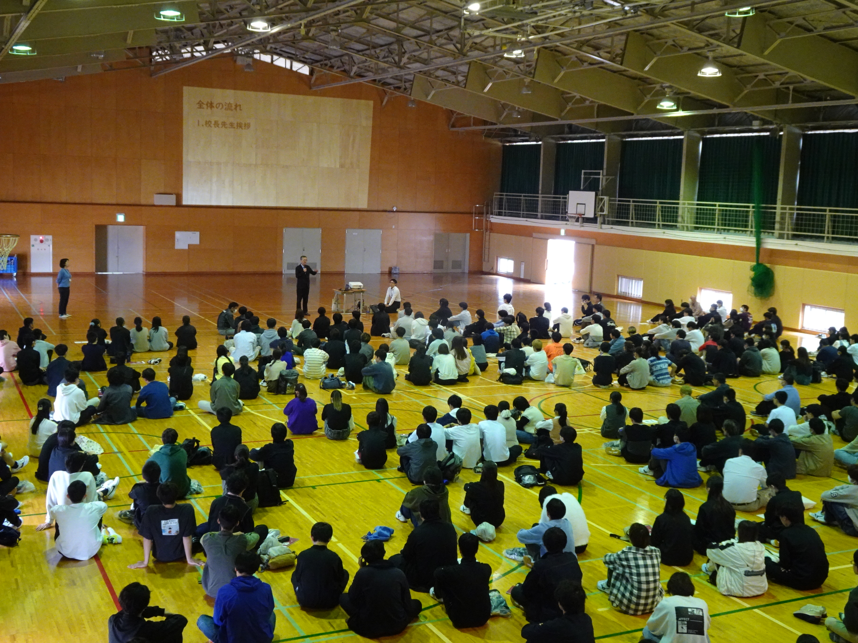 第1回目の授業として、体育館で実施されたガイダンスの冒頭では、土居校長から、学生の1年間の活動を通じた成長と自分たちが設定した高い目標に向かって進むことを期待している旨のお話がありました。その後、担当教員より、本授業導入の背景や目的、授業の進め方等についての説明を行いました。ガイダンス後は、全体アイスブレイク、各チームでのチームビルディングが行われ、終始和やかな雰囲気で進んでいきました。