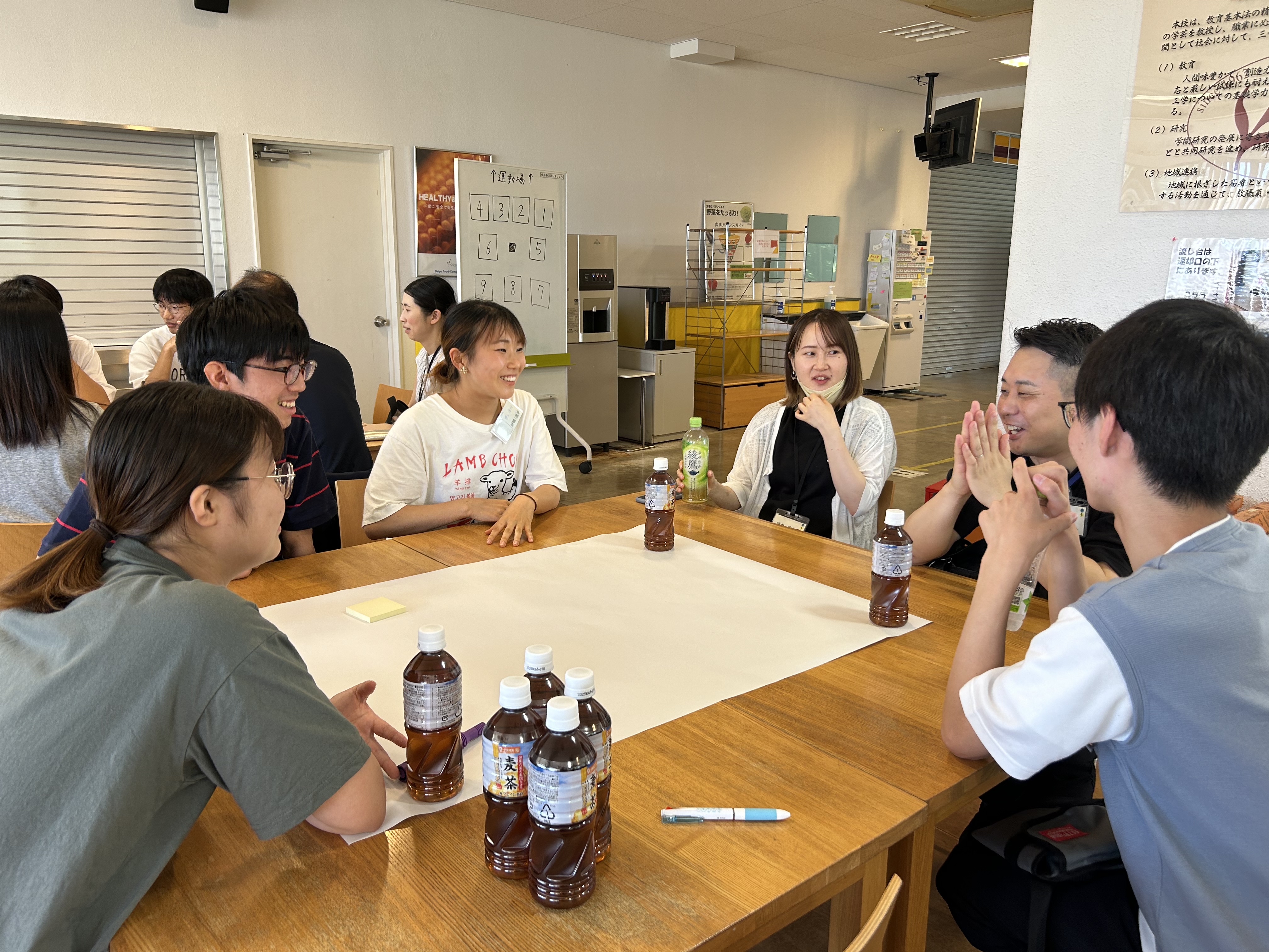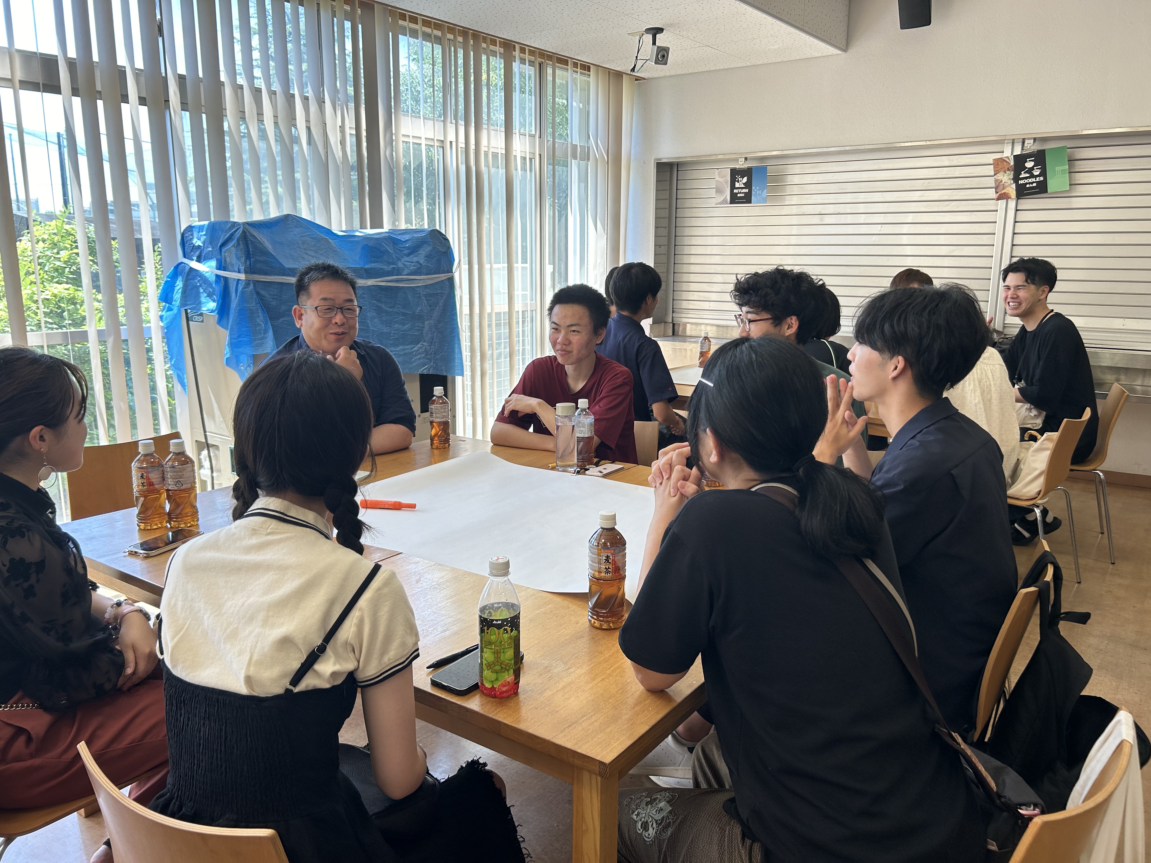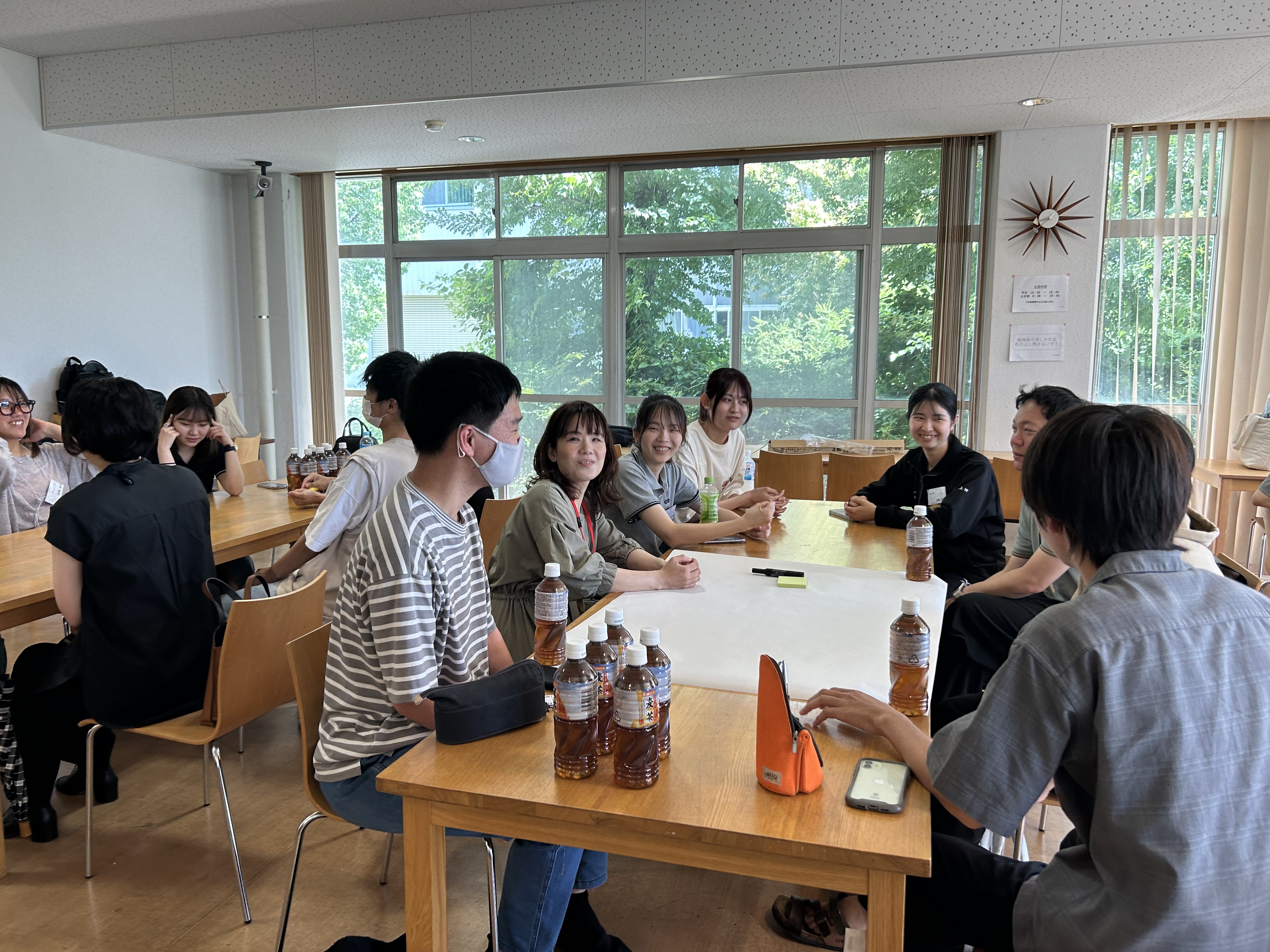 イベントは2部形式で行い、第1部はランダム、第2部は職種別に、学生と卒業生を9つのグループに分けて、気になったことを模造紙やふせんに書き留めながら、学生の何気ない質問にも親身になって答えていただきました。外部で開催される進路関係のイベントとは異なり、お互い気軽に意見交換できる点もこのイベントの大きな魅力になっています。