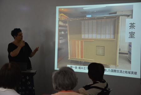 まずは、本校の概要や歴史ならびに本校の取り組み等について紹介・解説を行った後、建築学科の東野教授より「茶室」に関する講義を実施しました。
