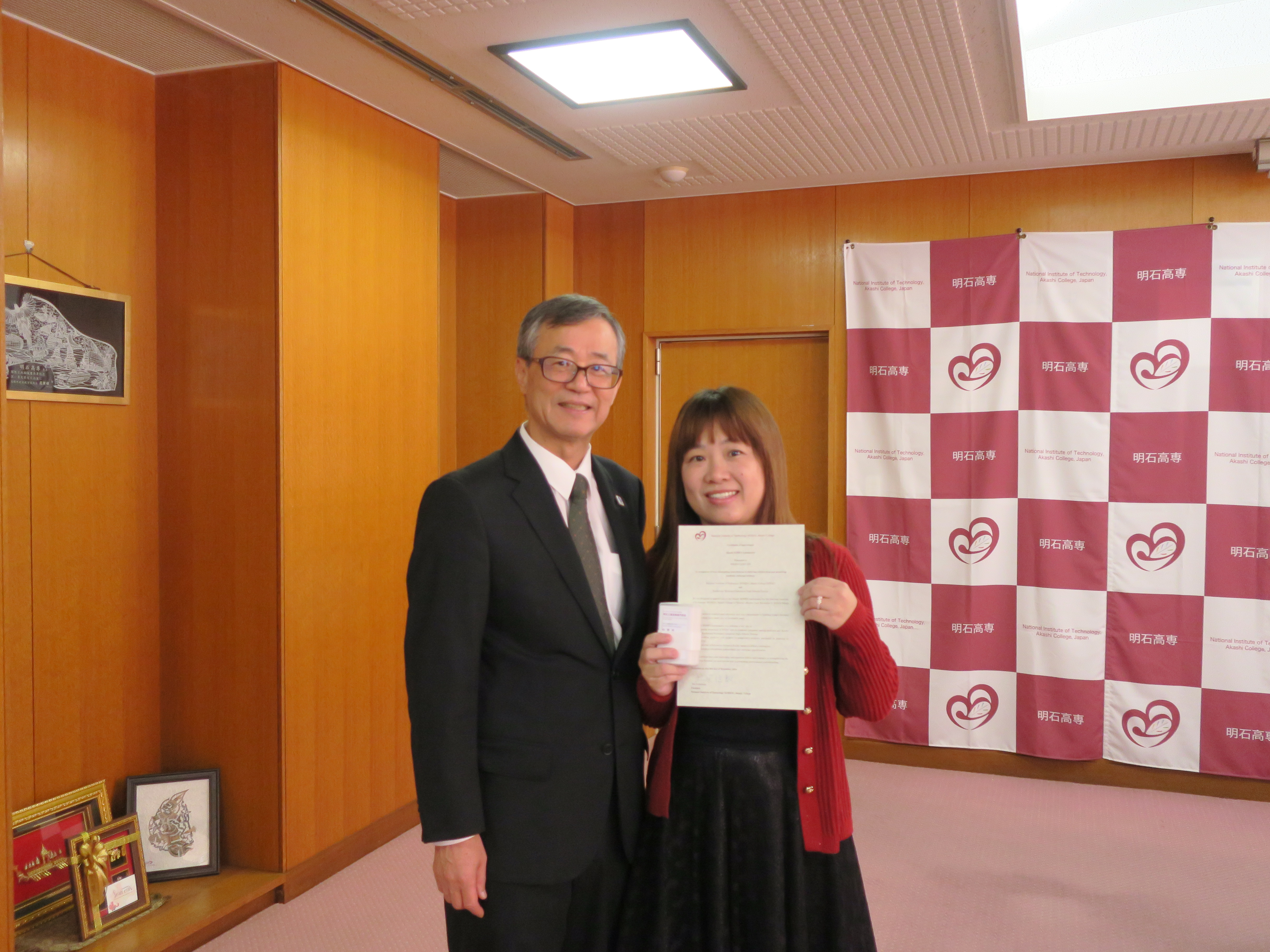 KIHS教員への明石高専アンバサダー称号授与の様子