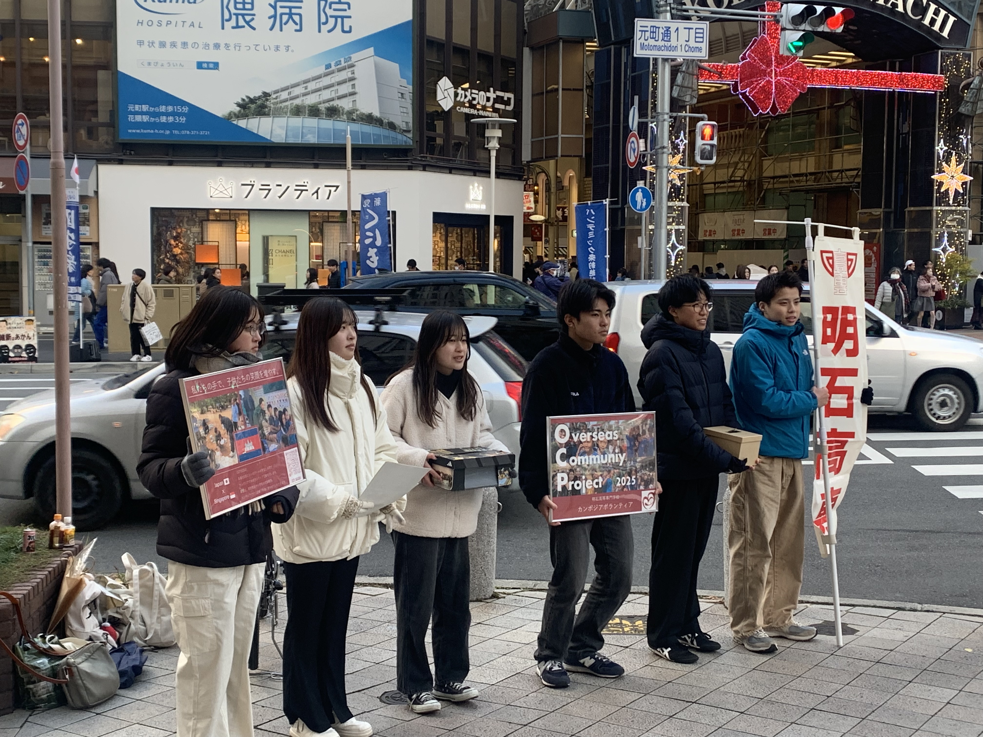 春期海外研修「Overseas Community Project in Cambodia」に参加する学生12名が、12月上旬の週末に合計4日間、神戸・三宮で募金活動を実施しました。