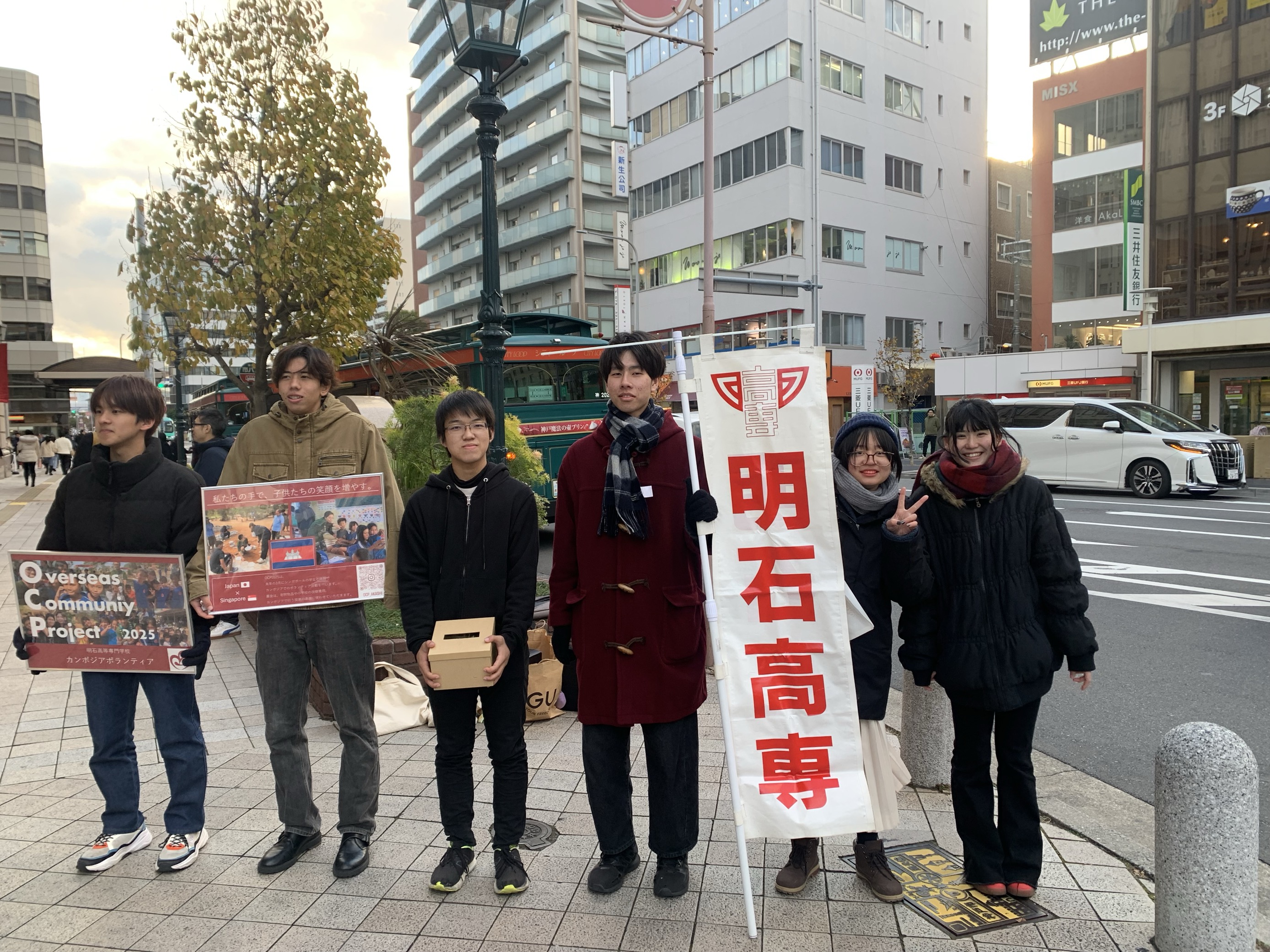 今回の募金活動は、2025年3月に研修先のカンボジアで行う小学校修繕作業や子どもたちへの学習教材の提供などの費用に充てられます。寒い中、学生は一生懸命に声を上げ、多くの方々から温かいご支援をいただきました。