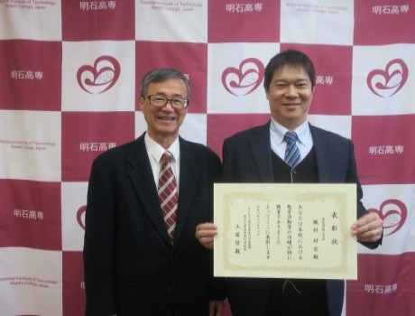 校長が表彰するもので、今年度は、電気情報工学科 梶村教授が受賞し、校長から表彰状が授与されました。