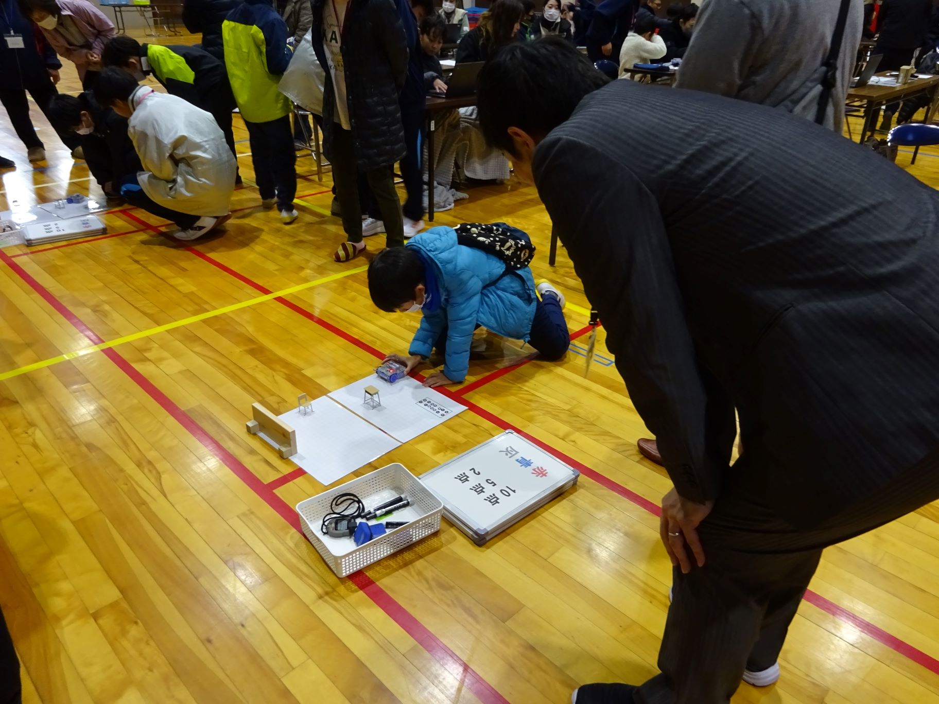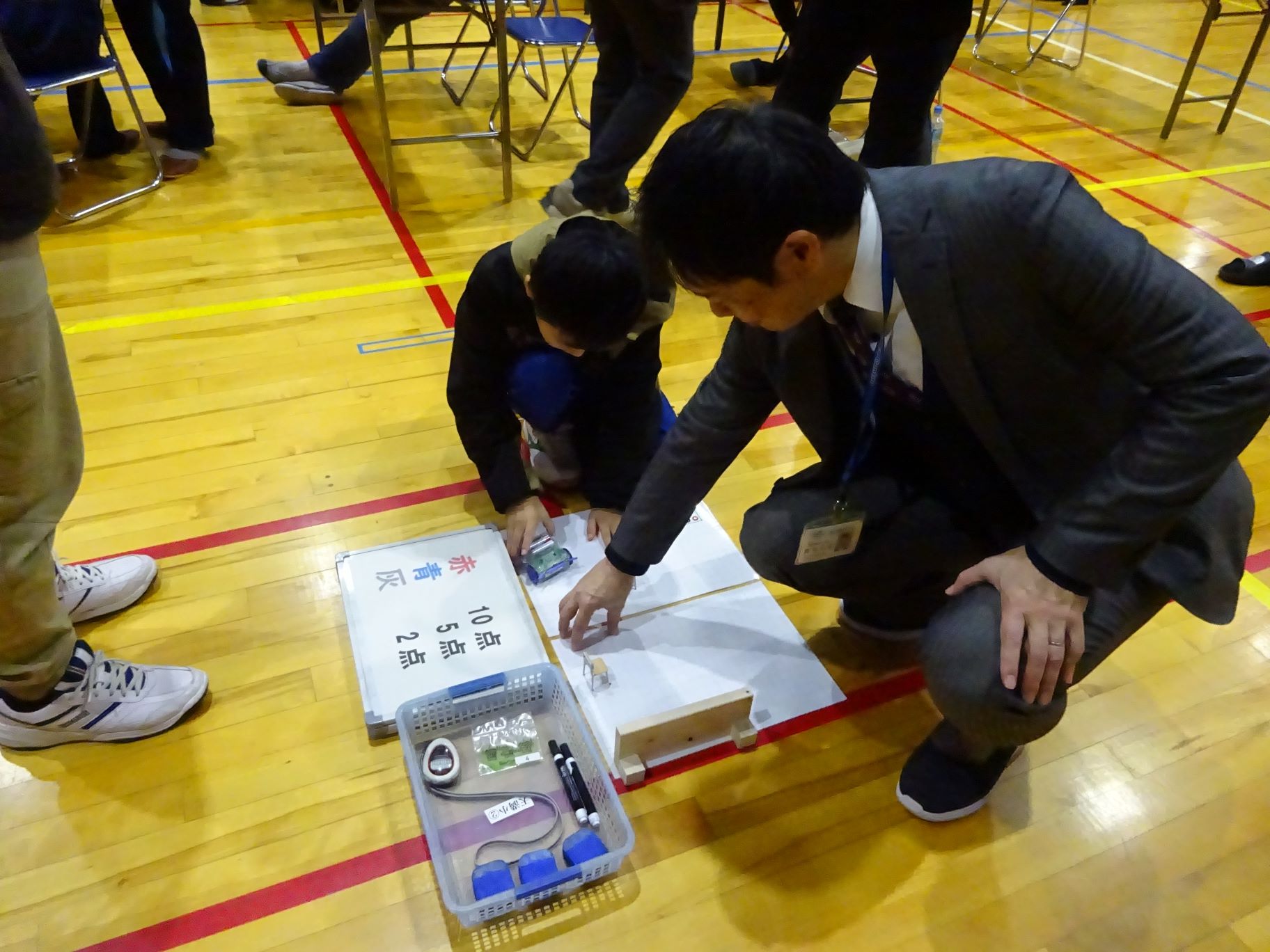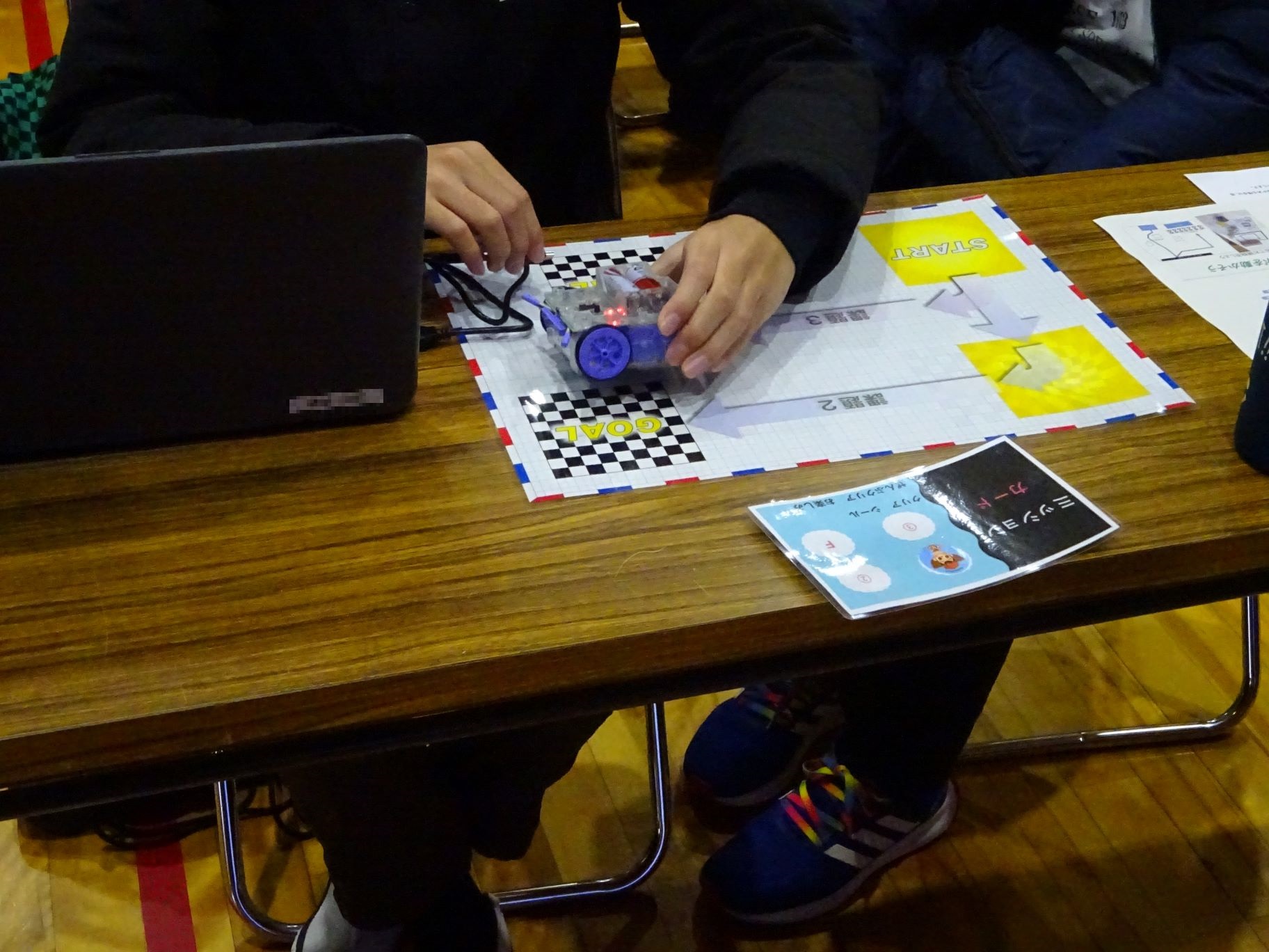 児童たちは試行錯誤しながら順に課題に取り組んでいました。課題4では、ゴールまでのタイムアタックとお掃除の回収量で順位をつけ、優勝者を決めました。