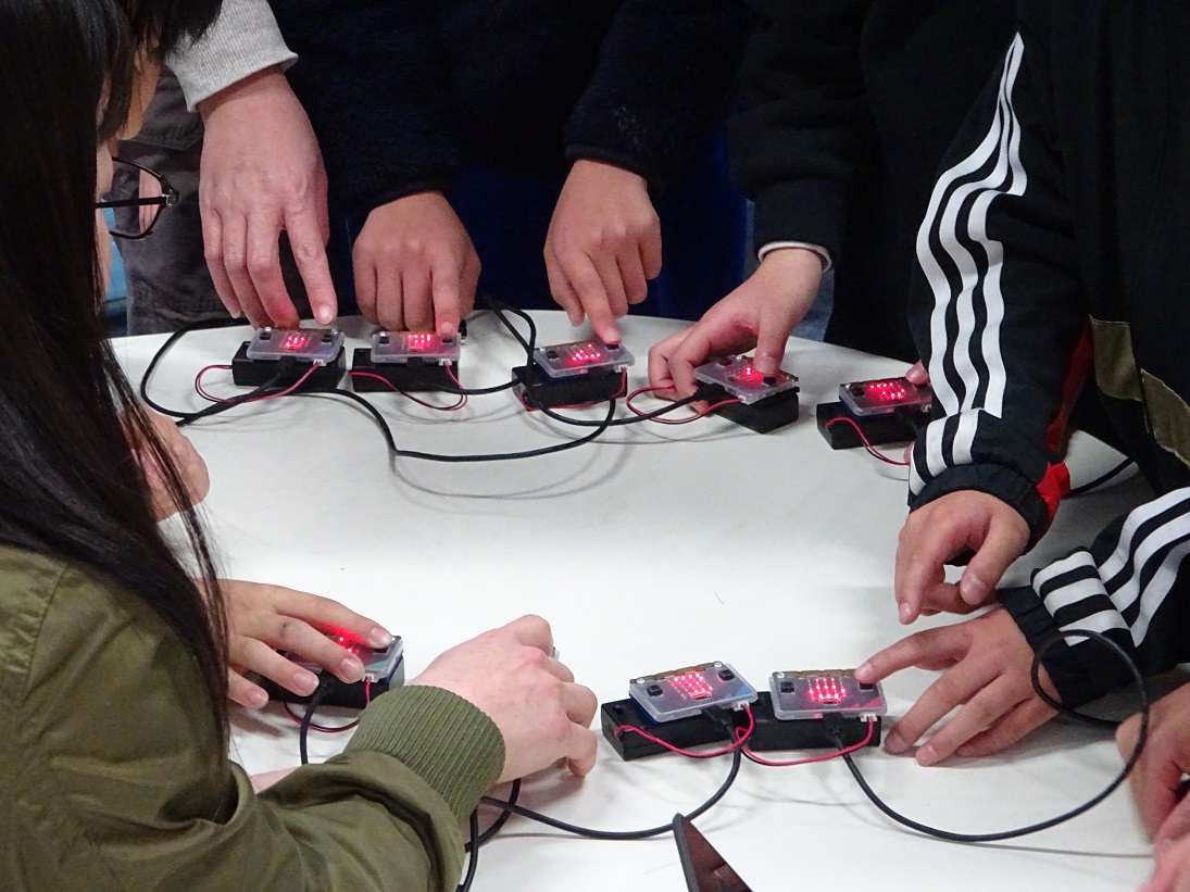 放課後に実施した親子向けの講座では、「micro:bitを用いてポーカーゲームをしよう」と題し、乱数を使ってトランプの数字を表示させるプログラムを作成した後、グループ毎に対戦を行いました。