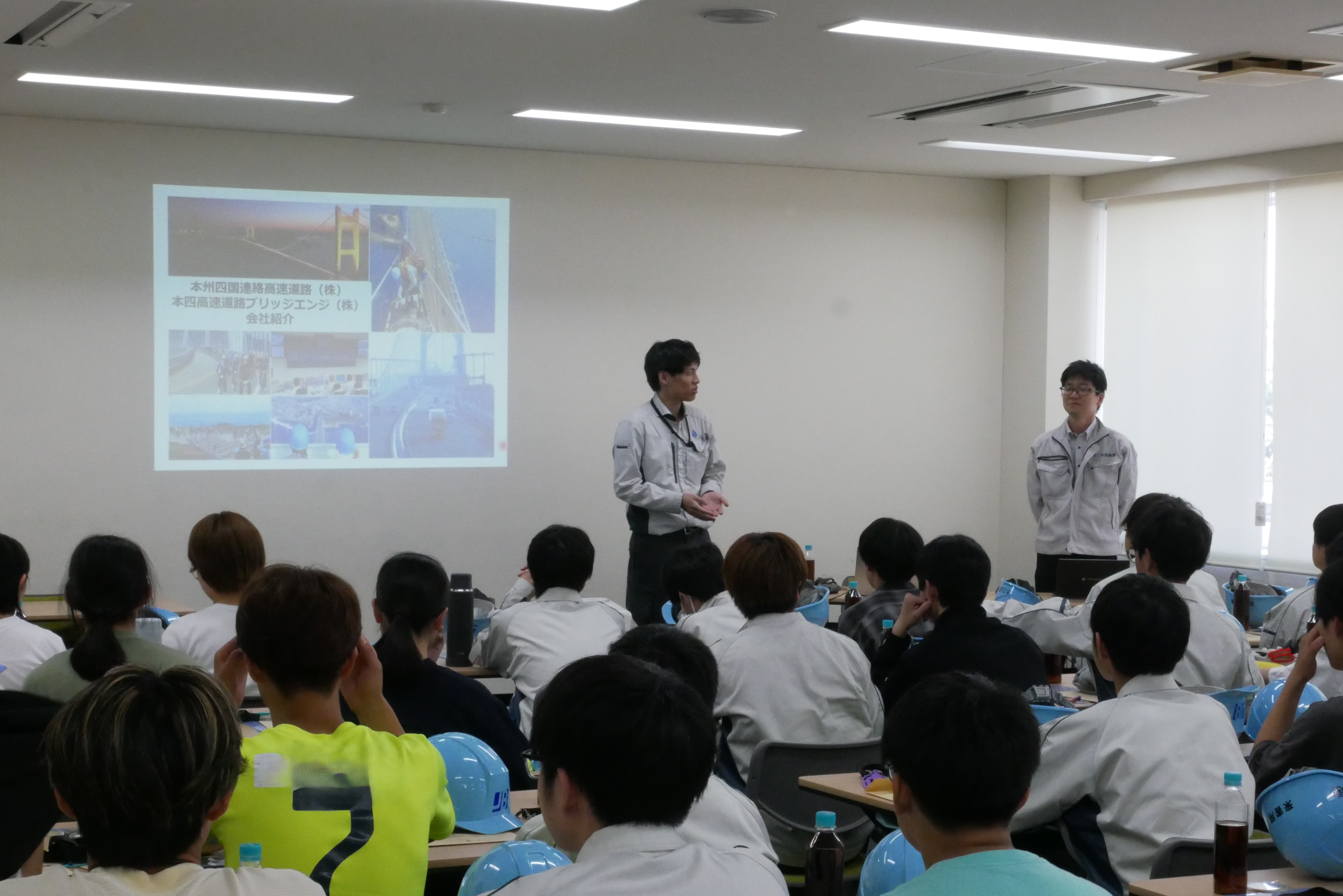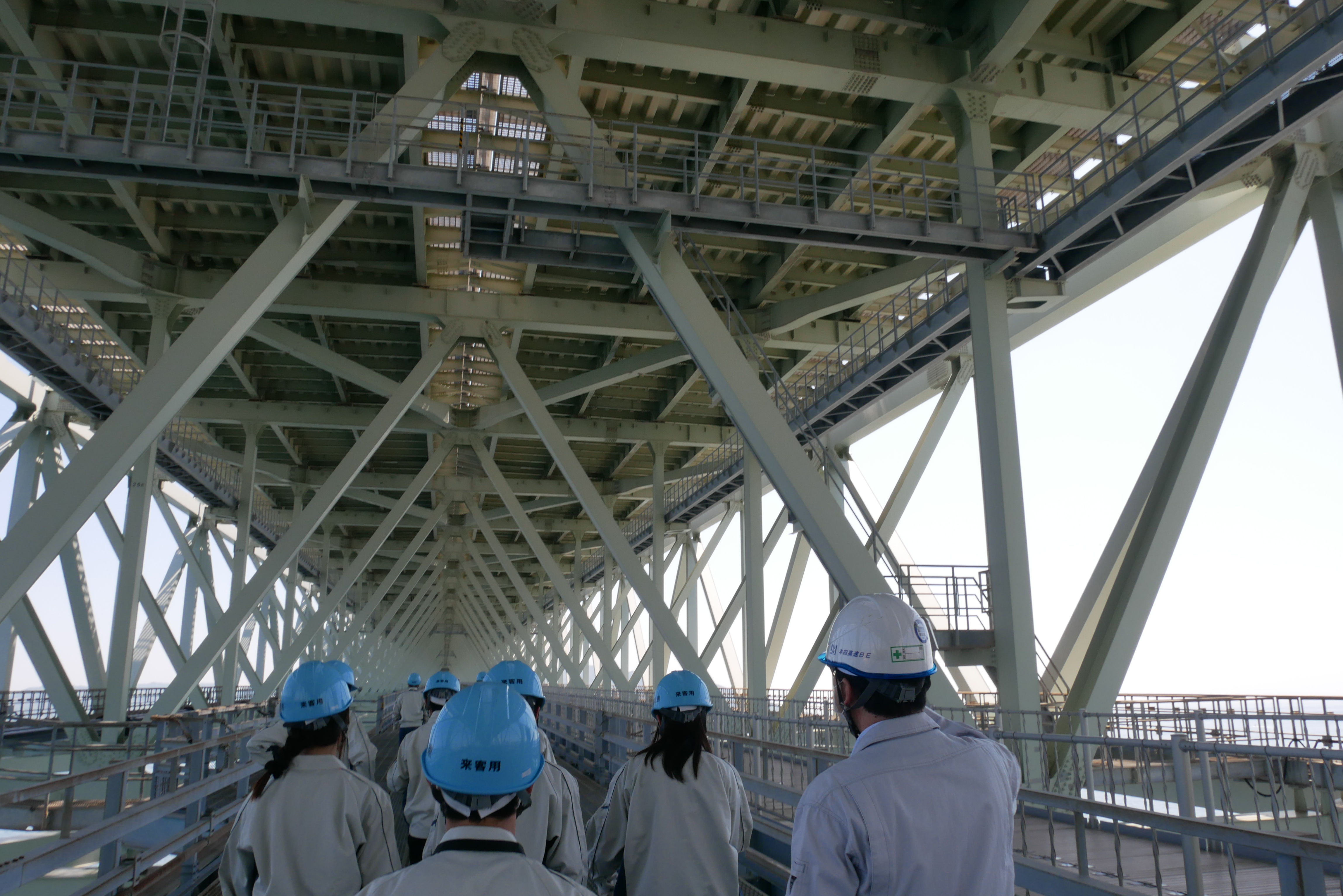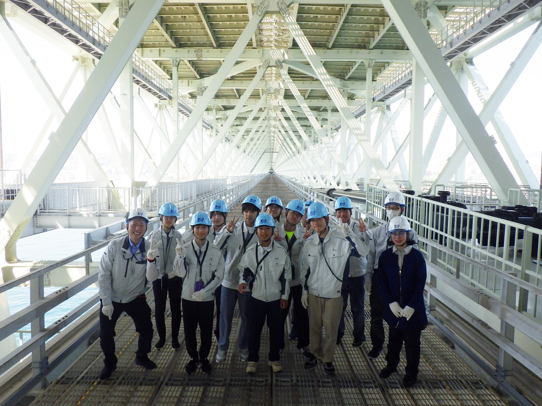 今回の見学会では、本四高速ブリッジエンジ株式会社に勤務する卒業生を中心に対応いただきました。先輩たちの姿から将来の目標を持った学生もおり、これからの明石高専での5年間を通して、学びがより深まり将来の興味や関心につながることを期待しています。