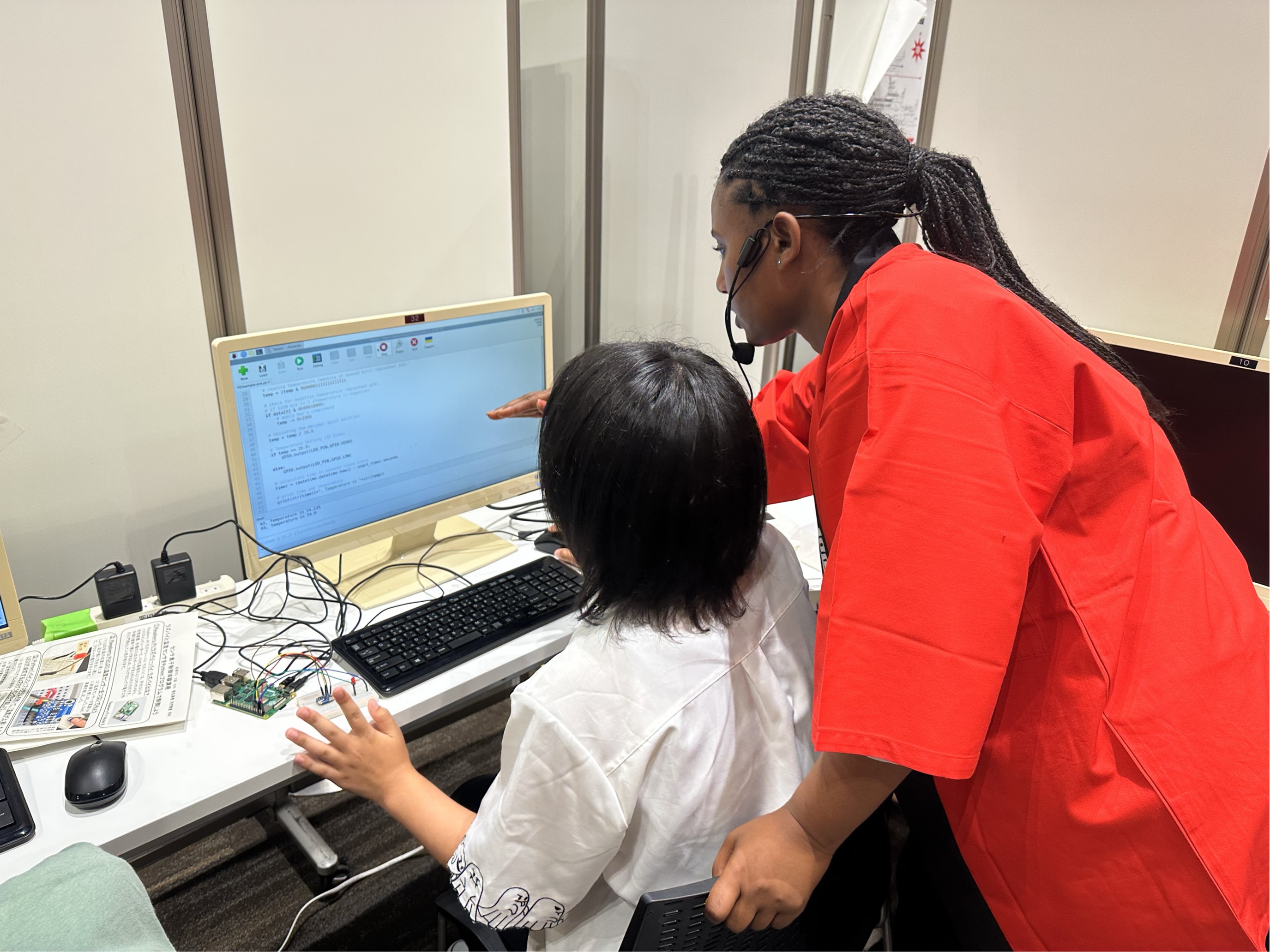 「センサ素子制御体験講座」では、参加者の皆様は、本校学生のサポートを受け、パイソンプログラムを用いた温度制御